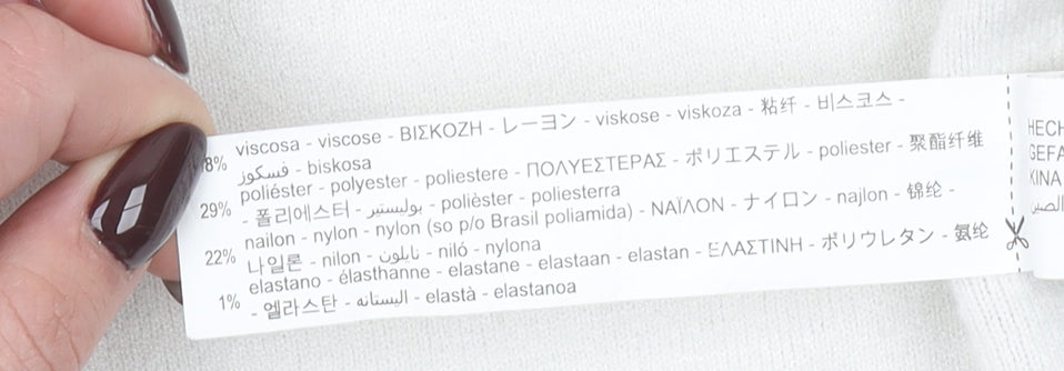 - Material Breakdown: 48% Viscose 29% Polyester 22% Nylon 1% Elastane