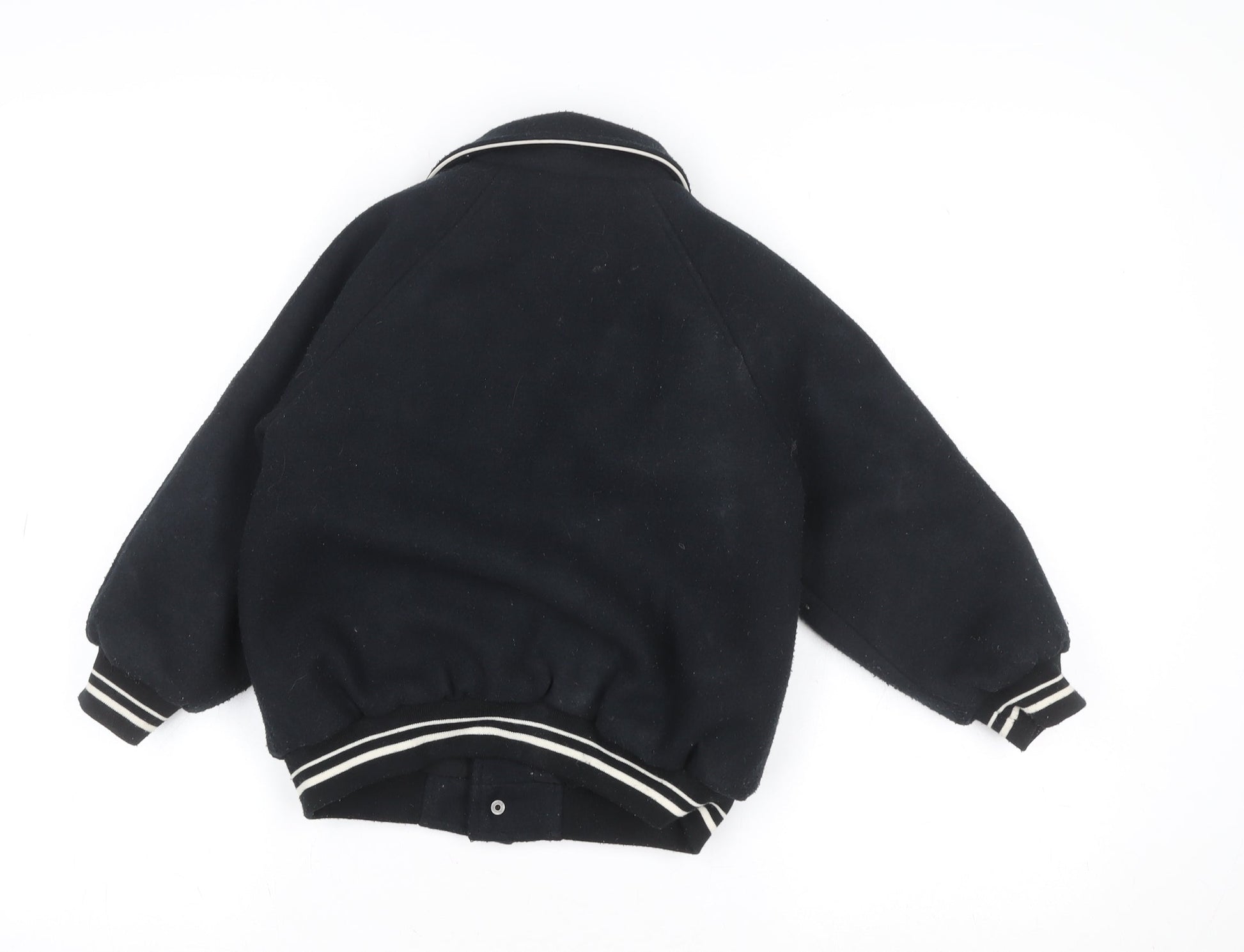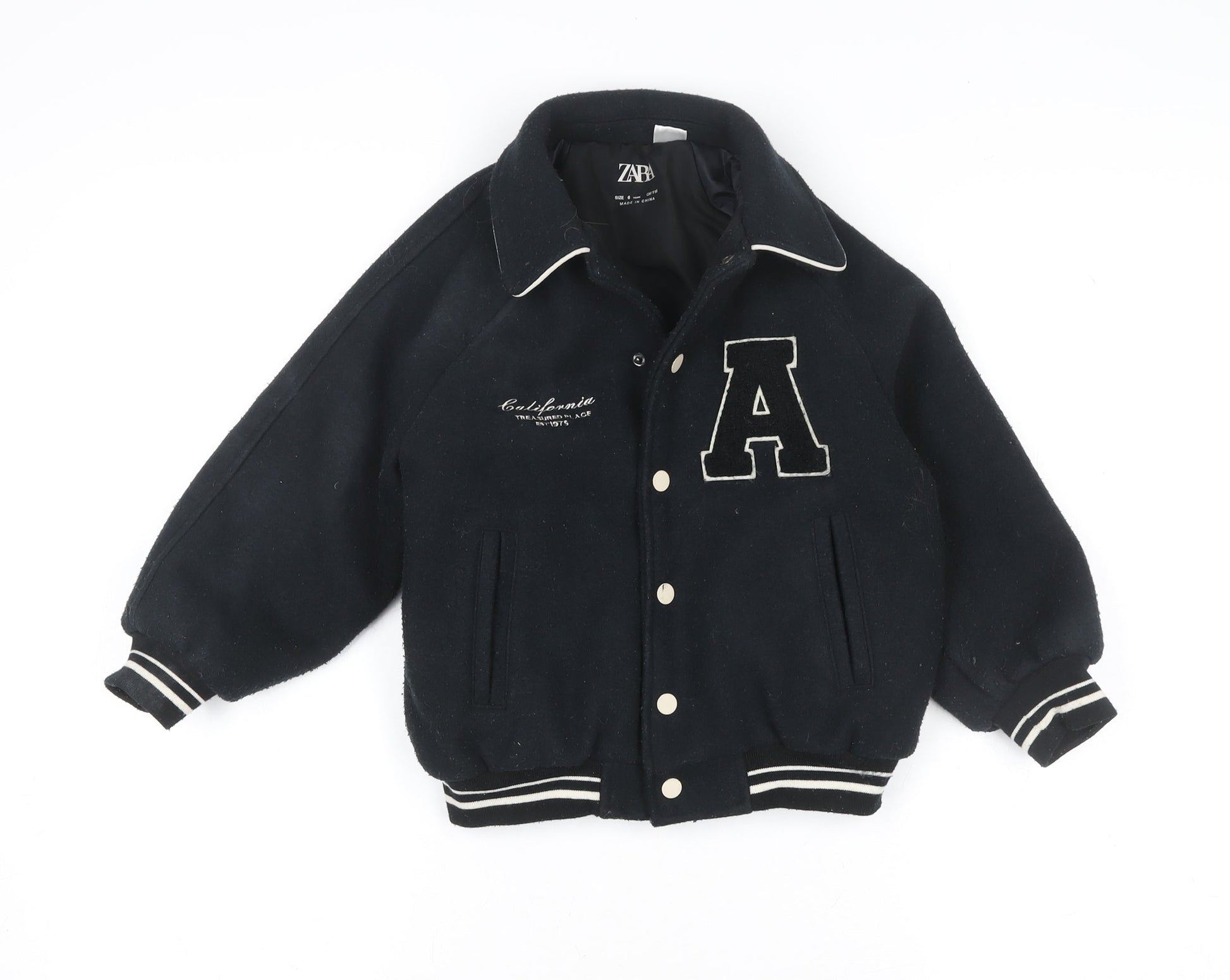 Zara Girls Black Varsity Jacket 6 Years Wool Blend Lined Button-Up