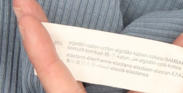 Zara Girls Blue Ribbed Long Sleeve Cotton T-Shirt 11-12 Years Slim Fit