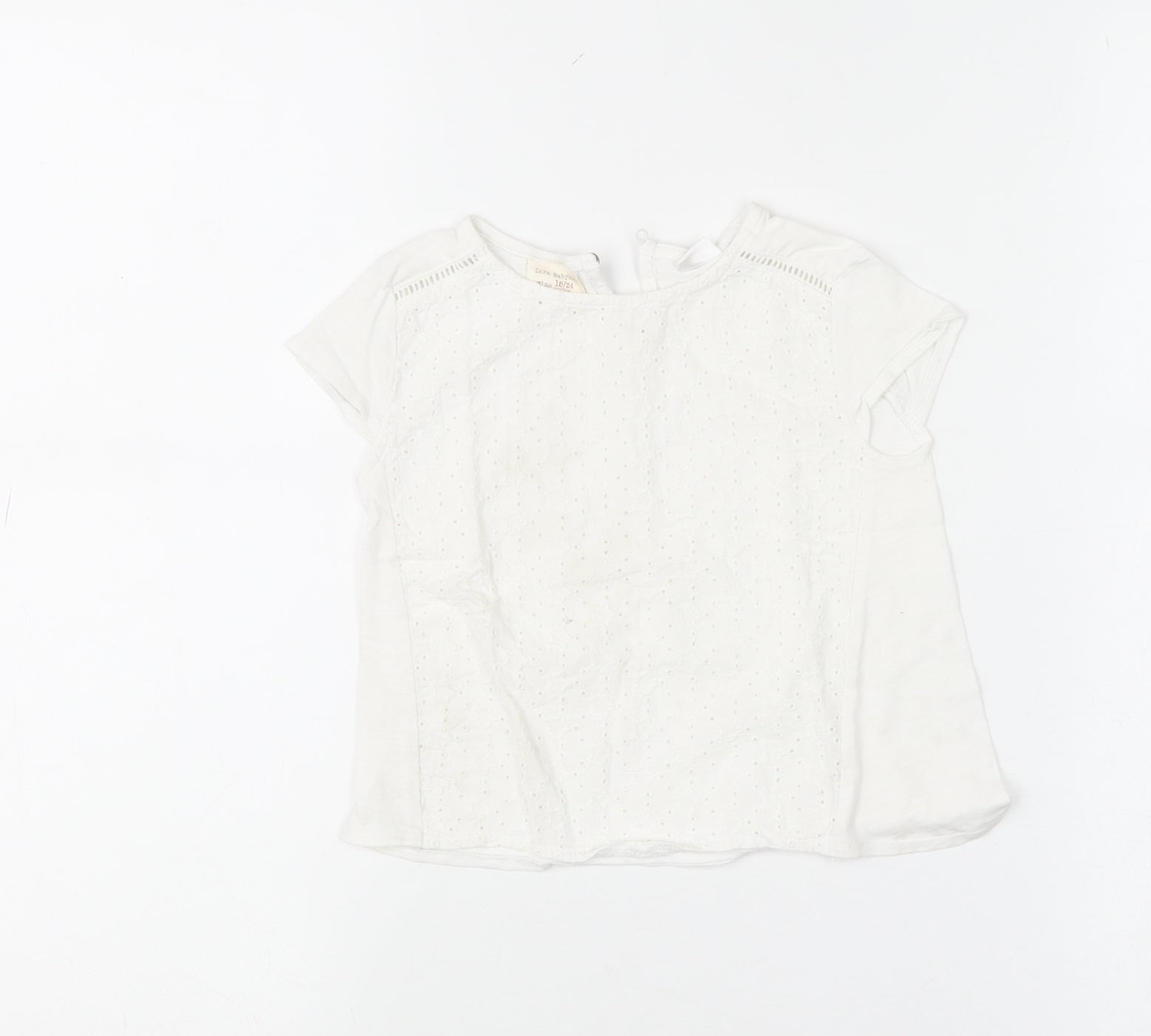 Zara Girls White Embroidered Cotton Short Sleeve Blouse 18-24 Months