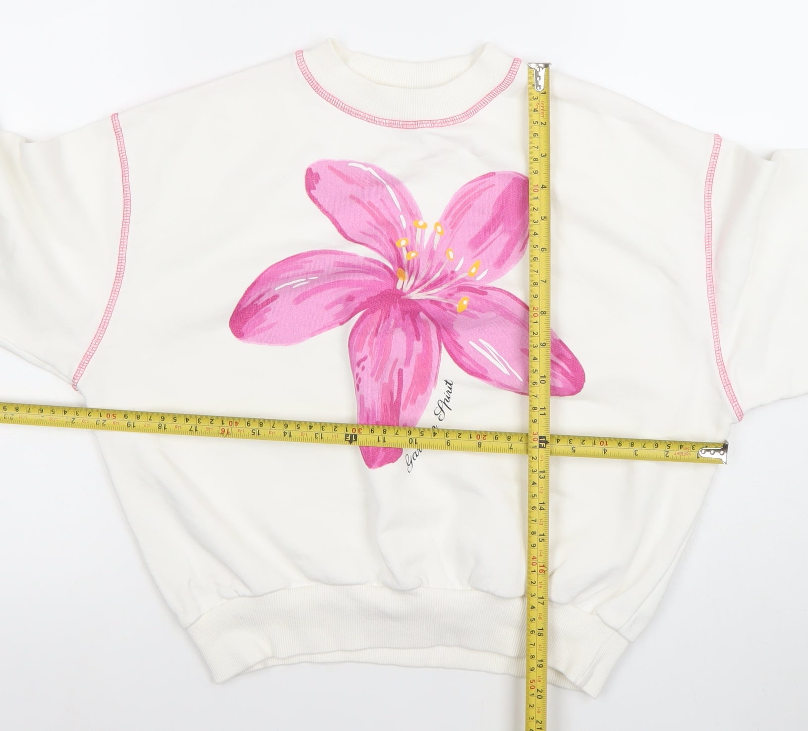 ZARA Girls White Floral Pullover Sweatshirt 11-12 Years Cotton Fleece