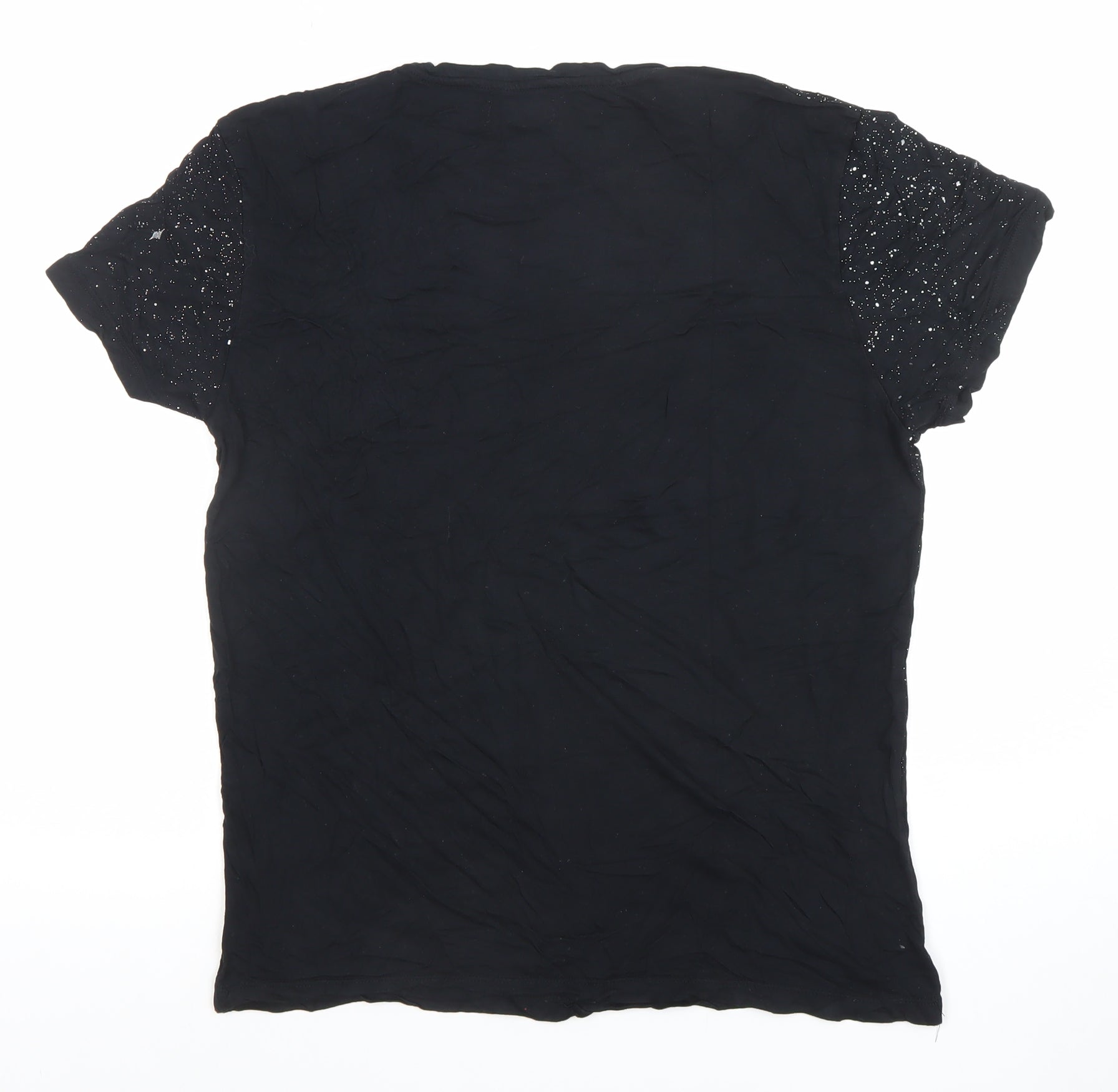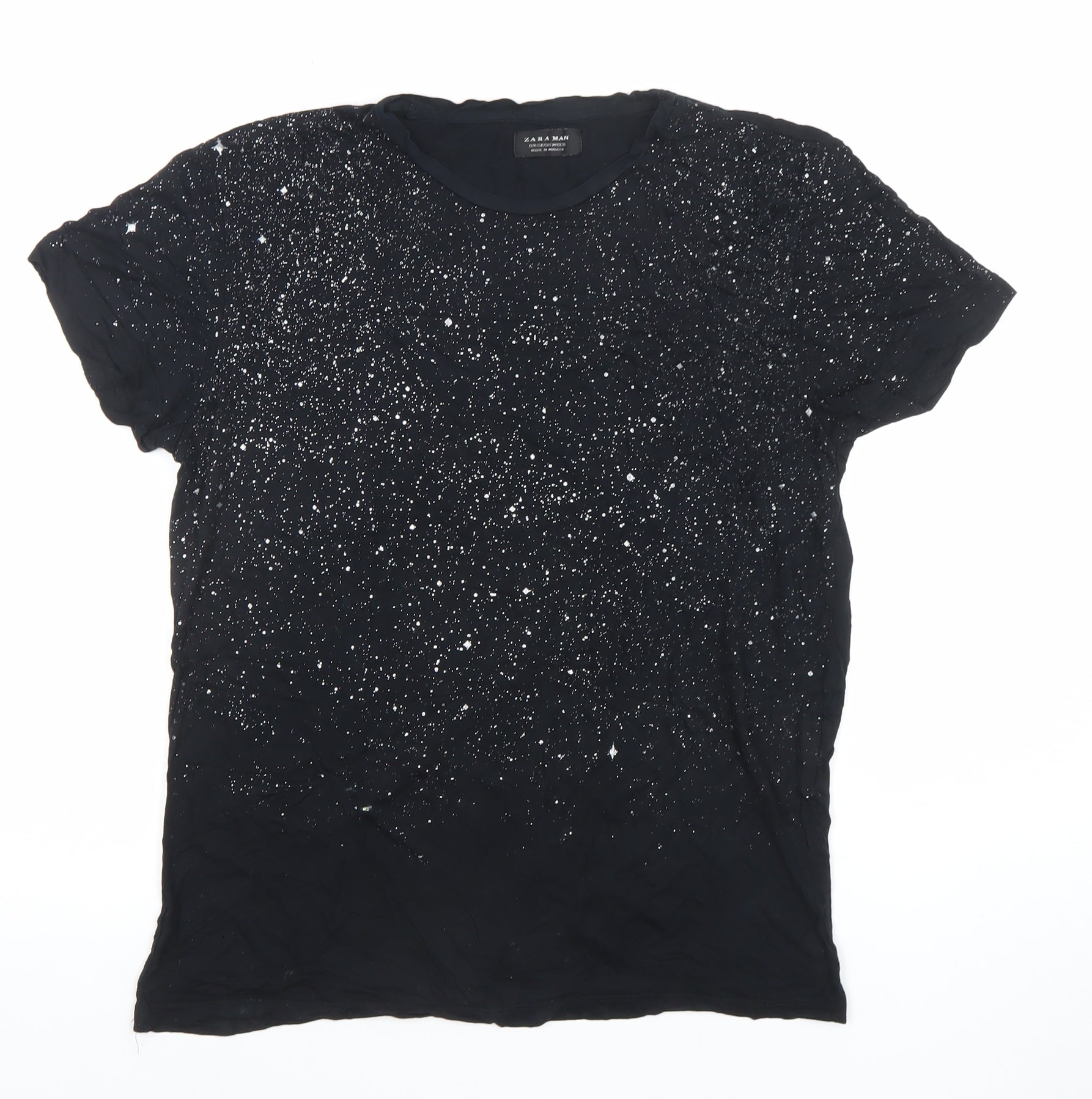 Zara Man Black Cosmic Print Cotton Short Sleeve Men's T-Shirt Size S
