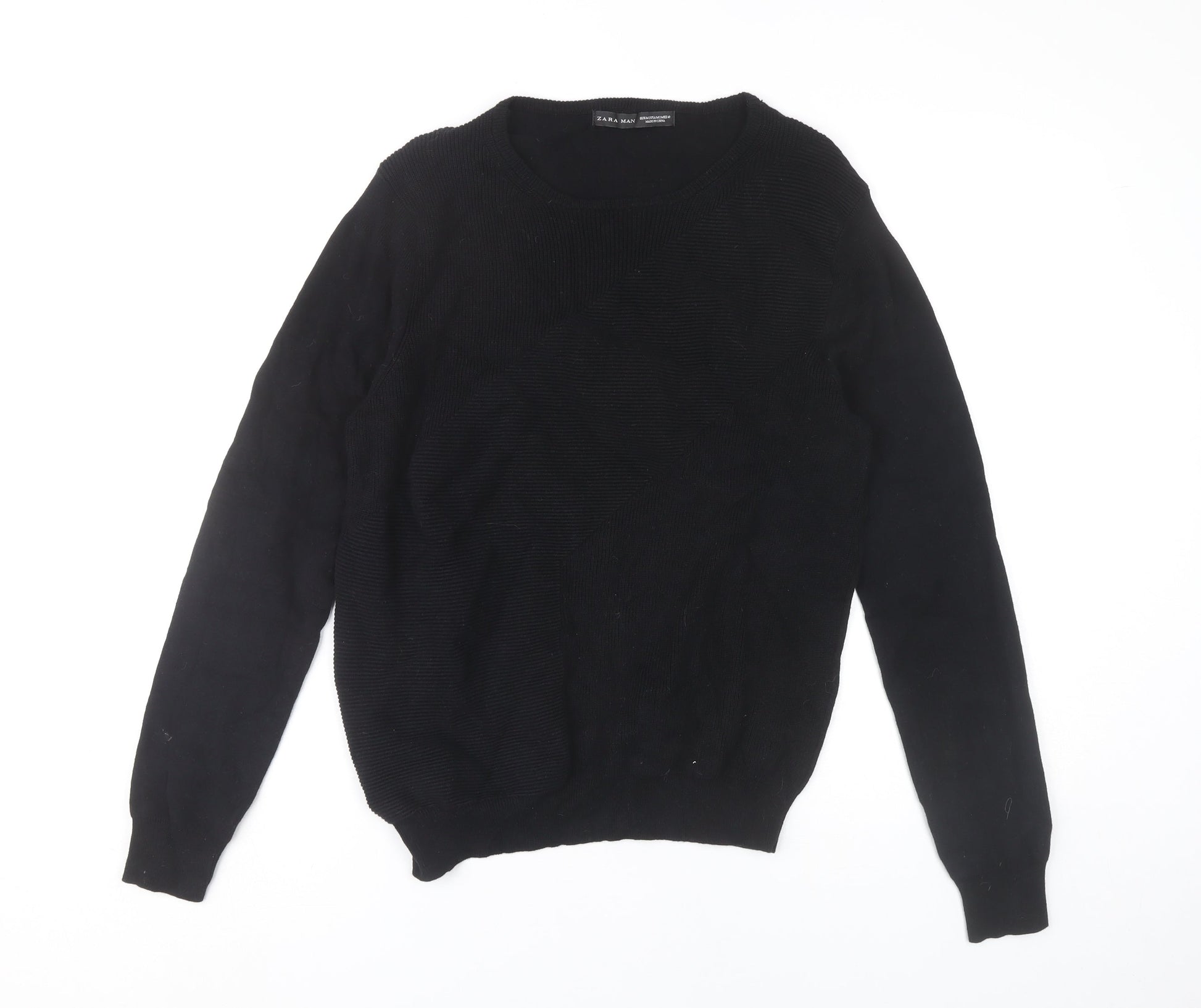 Zara Man Black Crew Neck Pullover Jumper Mens M Regular Fit