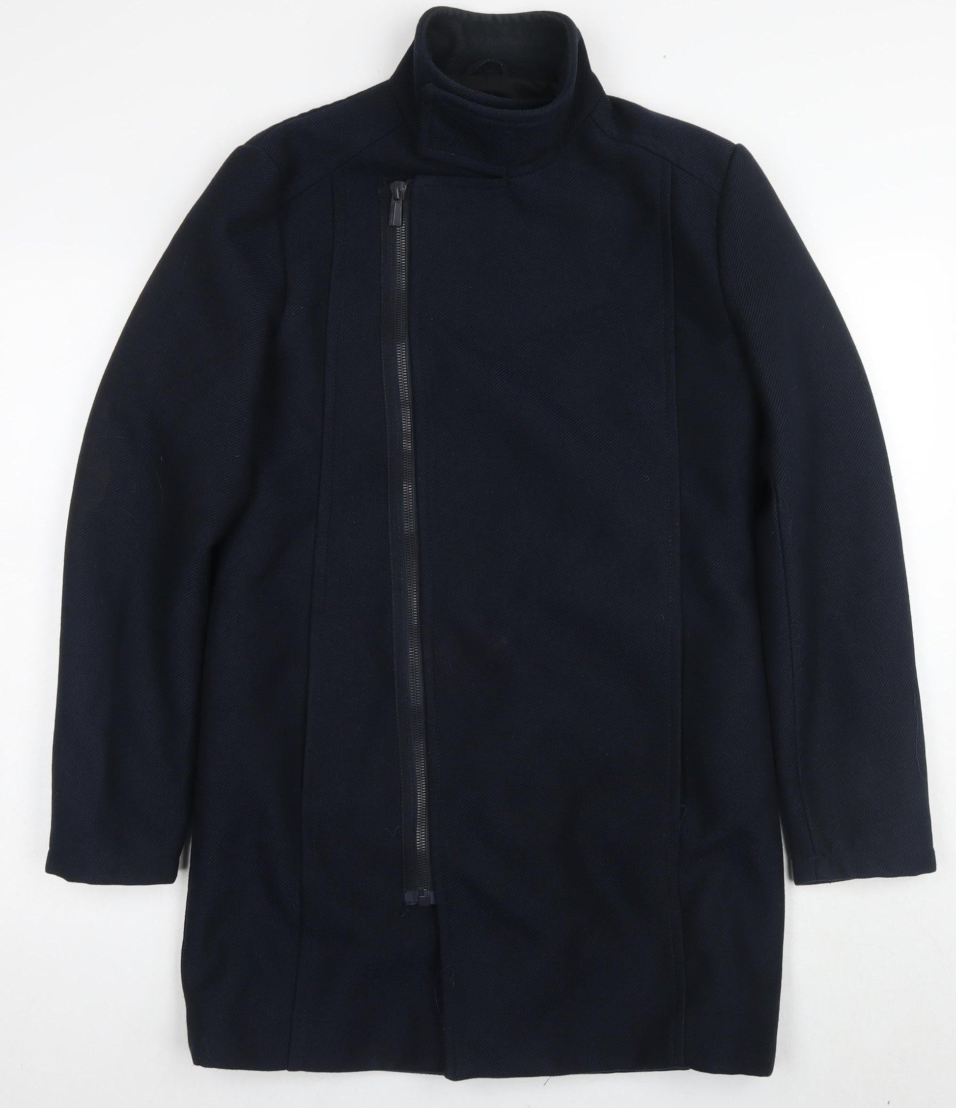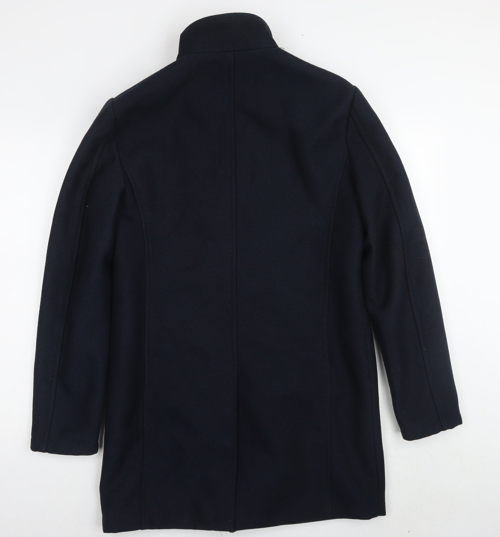 Zara Man Men's Black Wool Overcoat in M, Stand-Up Collar