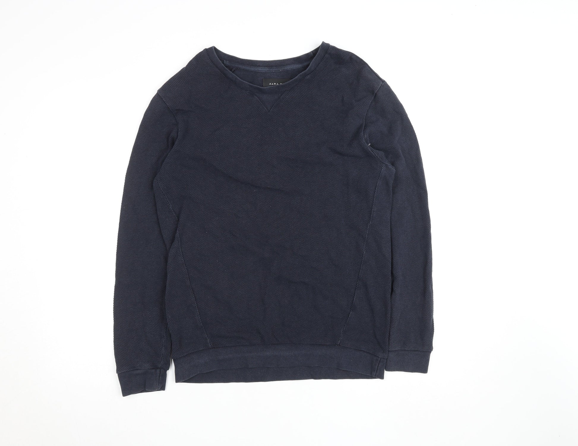 Zara Man Men's Blue Cotton Knit Pullover Crew Sweatshirt Size M