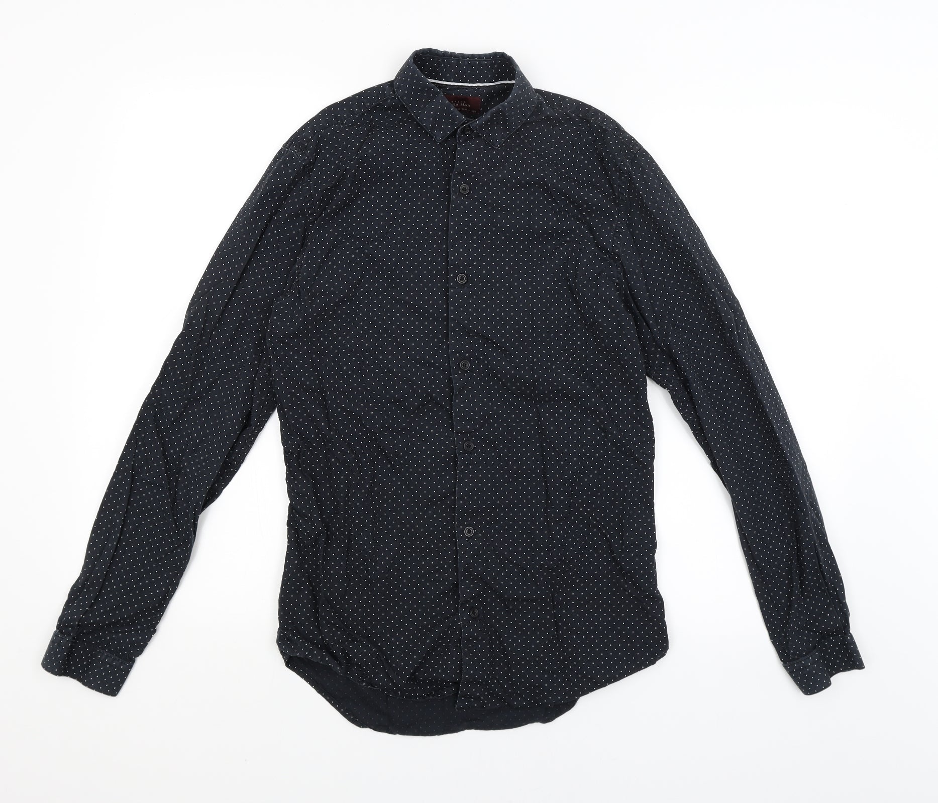 Zara Man Mens Blue Polka Dot Button-Up Size S