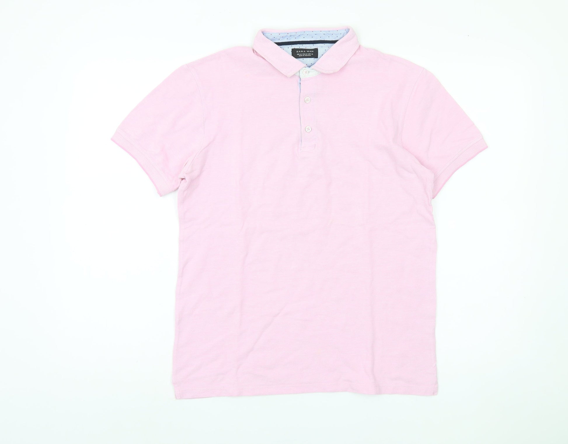 Zara Man Men's Pink Polo Shirt, Size M, Regular Fit