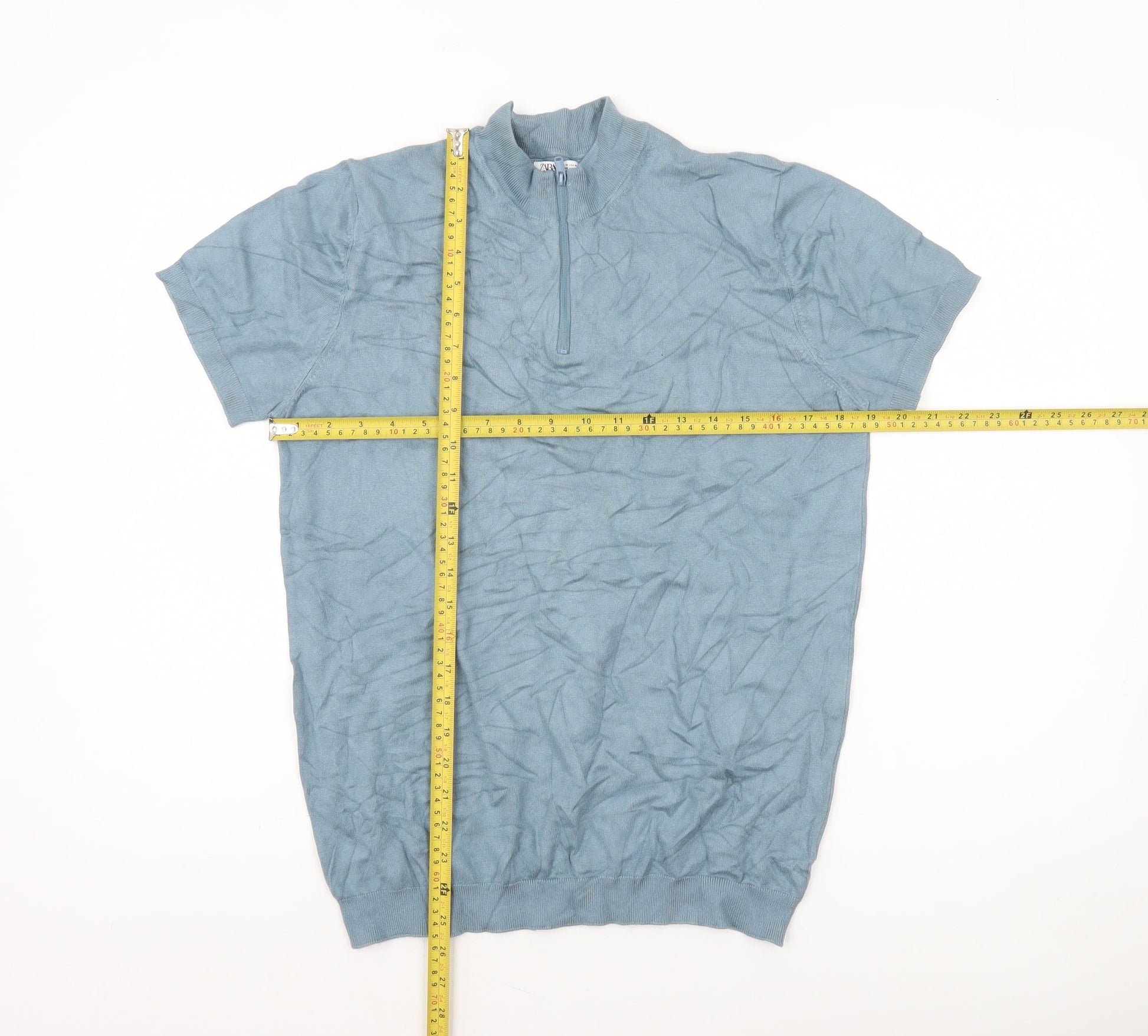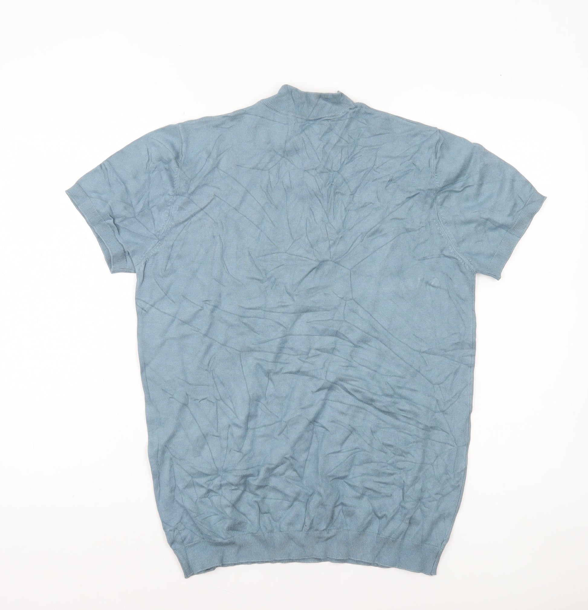 Zara Men’s Blue Cotton 1/2 Zip Short Sleeve Jumper M