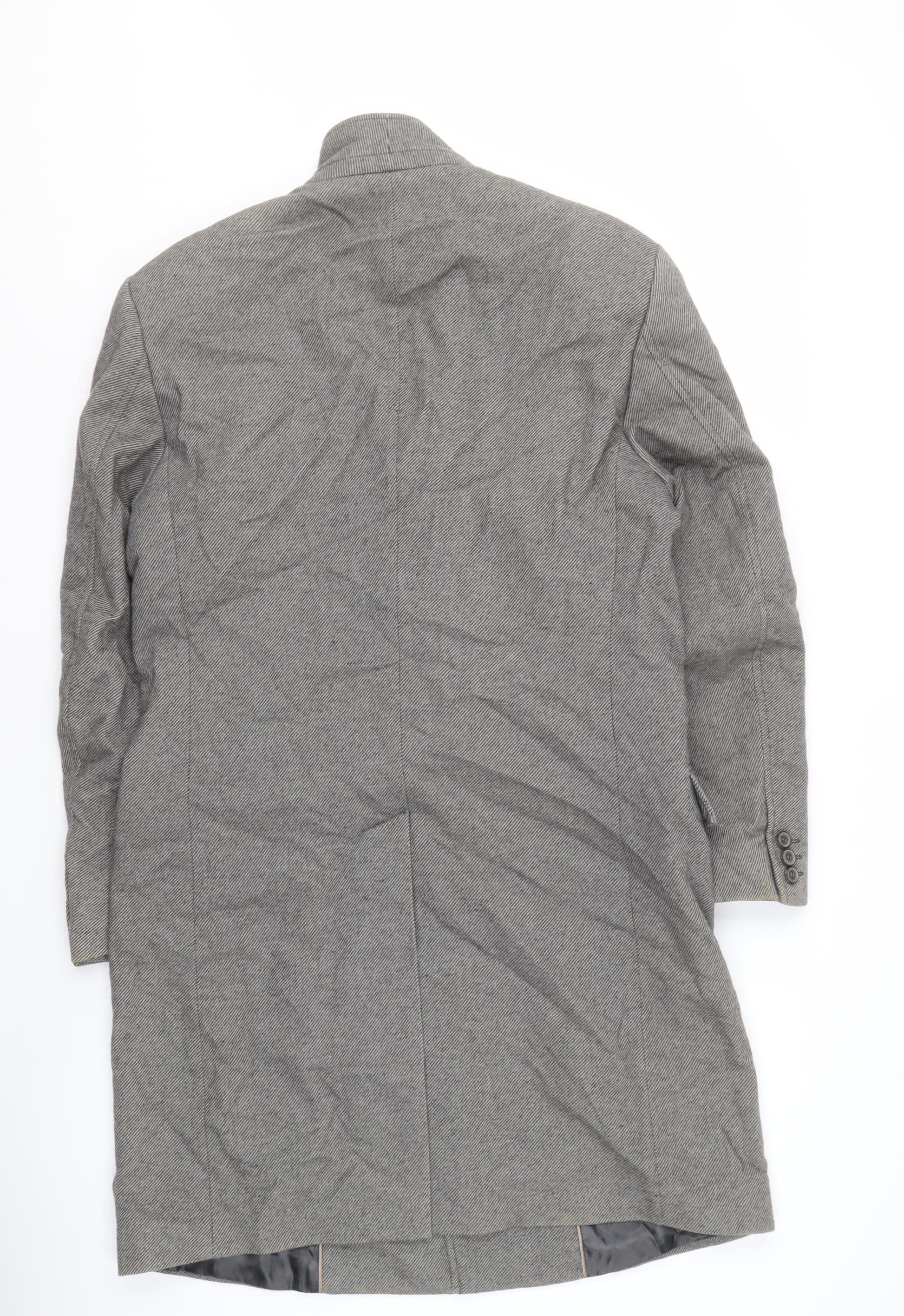 Zara Men’s Grey Overcoat, Size L - Stand-Up Collar