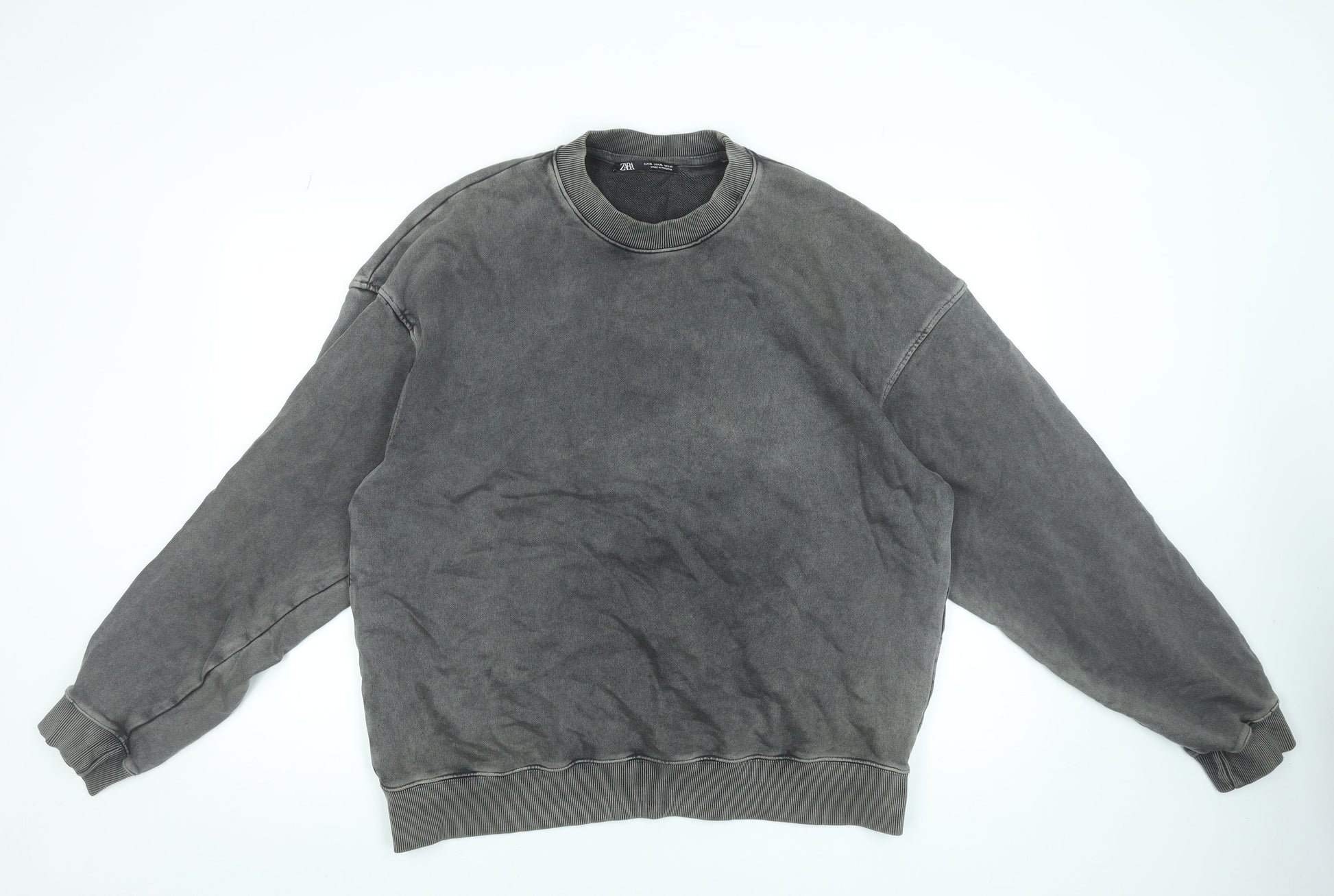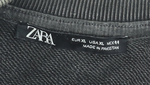 ZARA Men’s Grey XL Pullover Sweatshirt Crew Neck Cotton Relaxed Fit