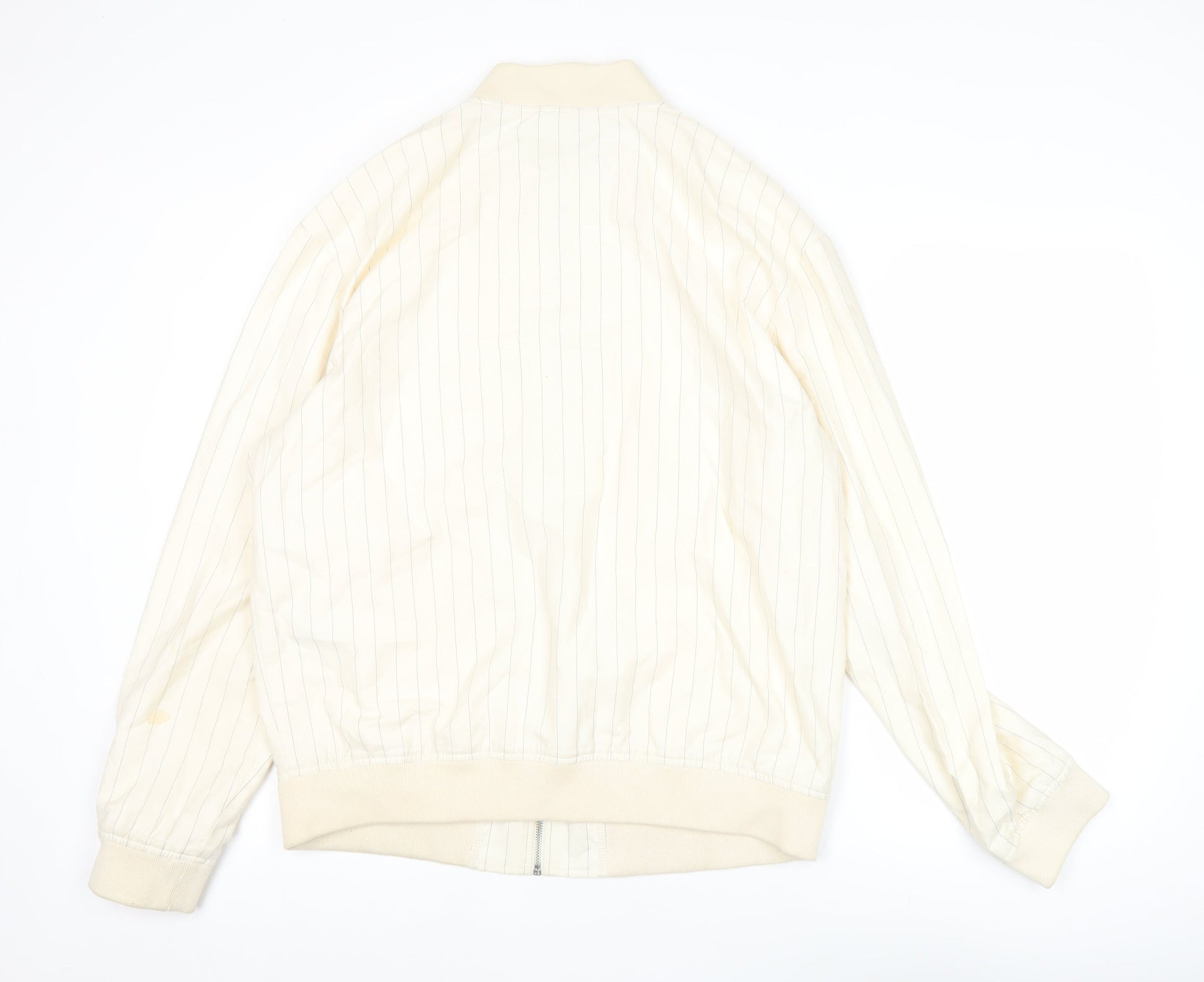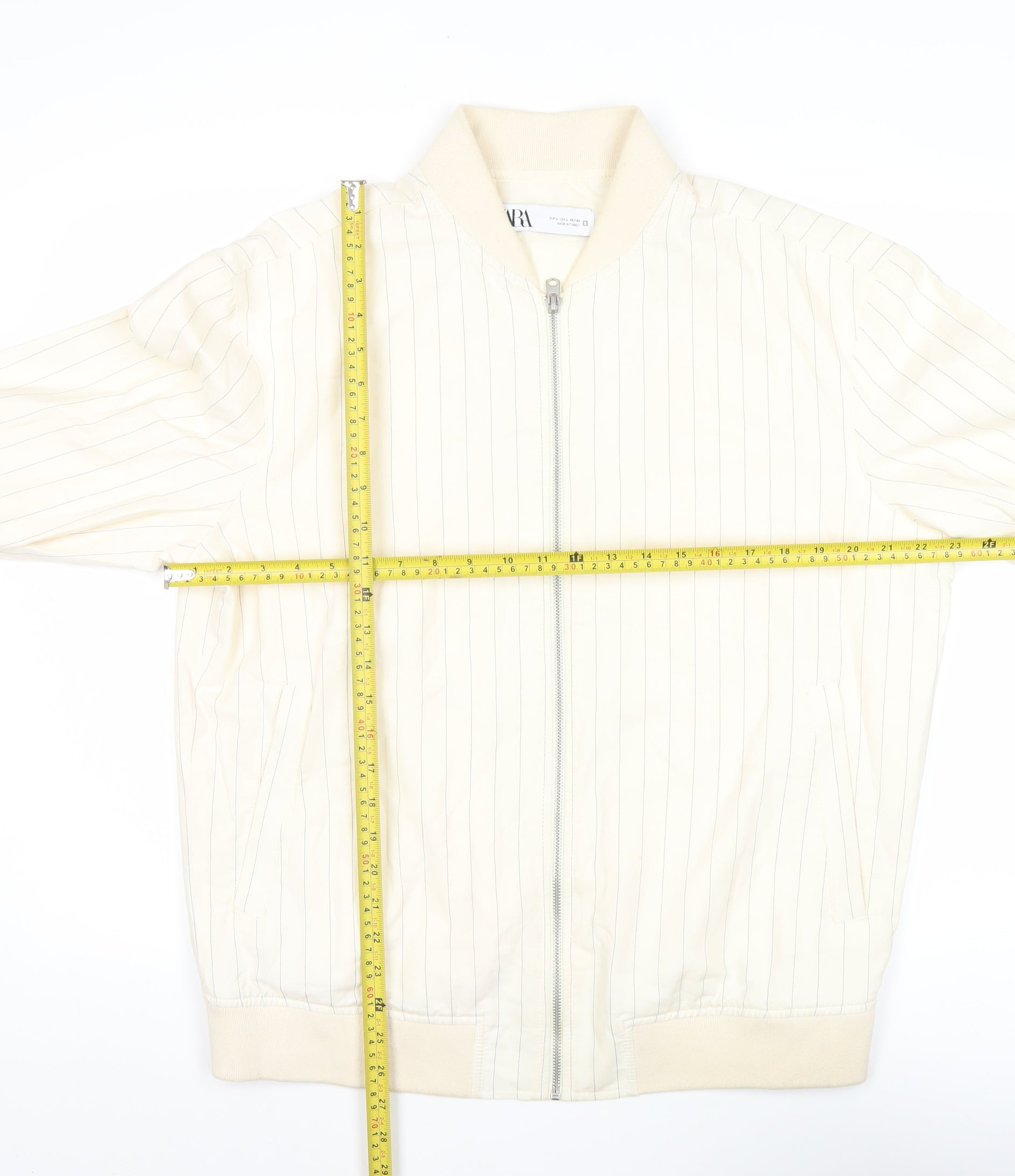 Zara Men’s Ivory Striped Bomber Jacket L Cotton Linen Casual
