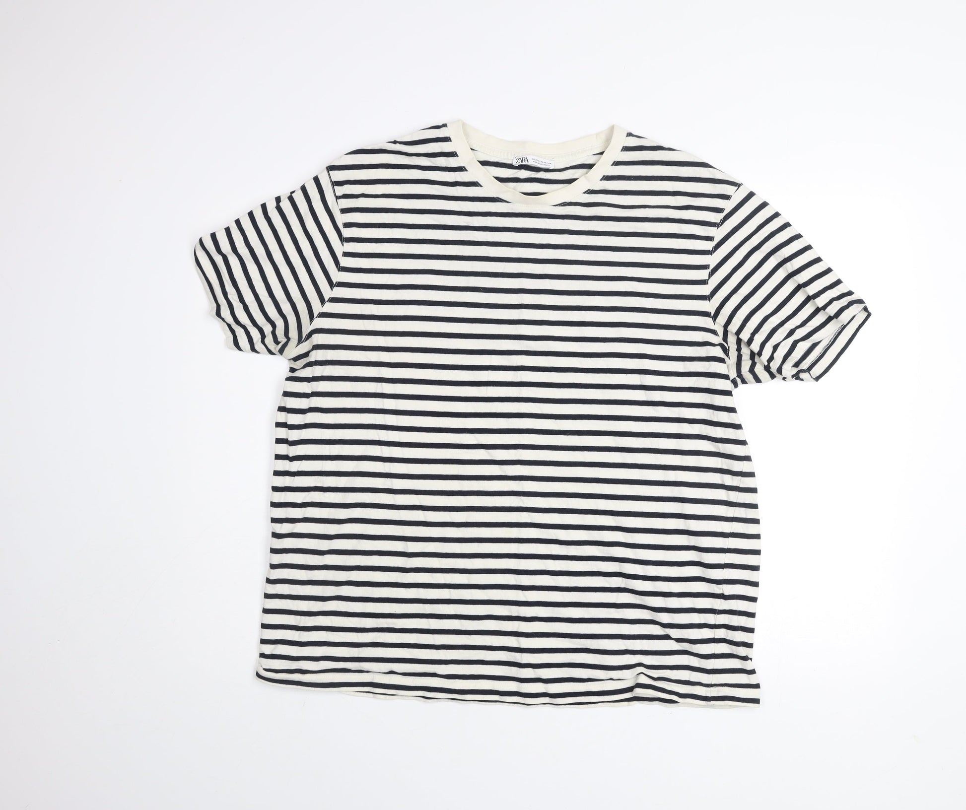 Zara Men’s White Black Striped Cotton Crew Neck T-Shirt XL