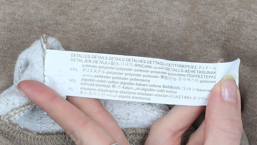 - Material Breakdown: 63% Polyester 34% Cotton 3% Elastane