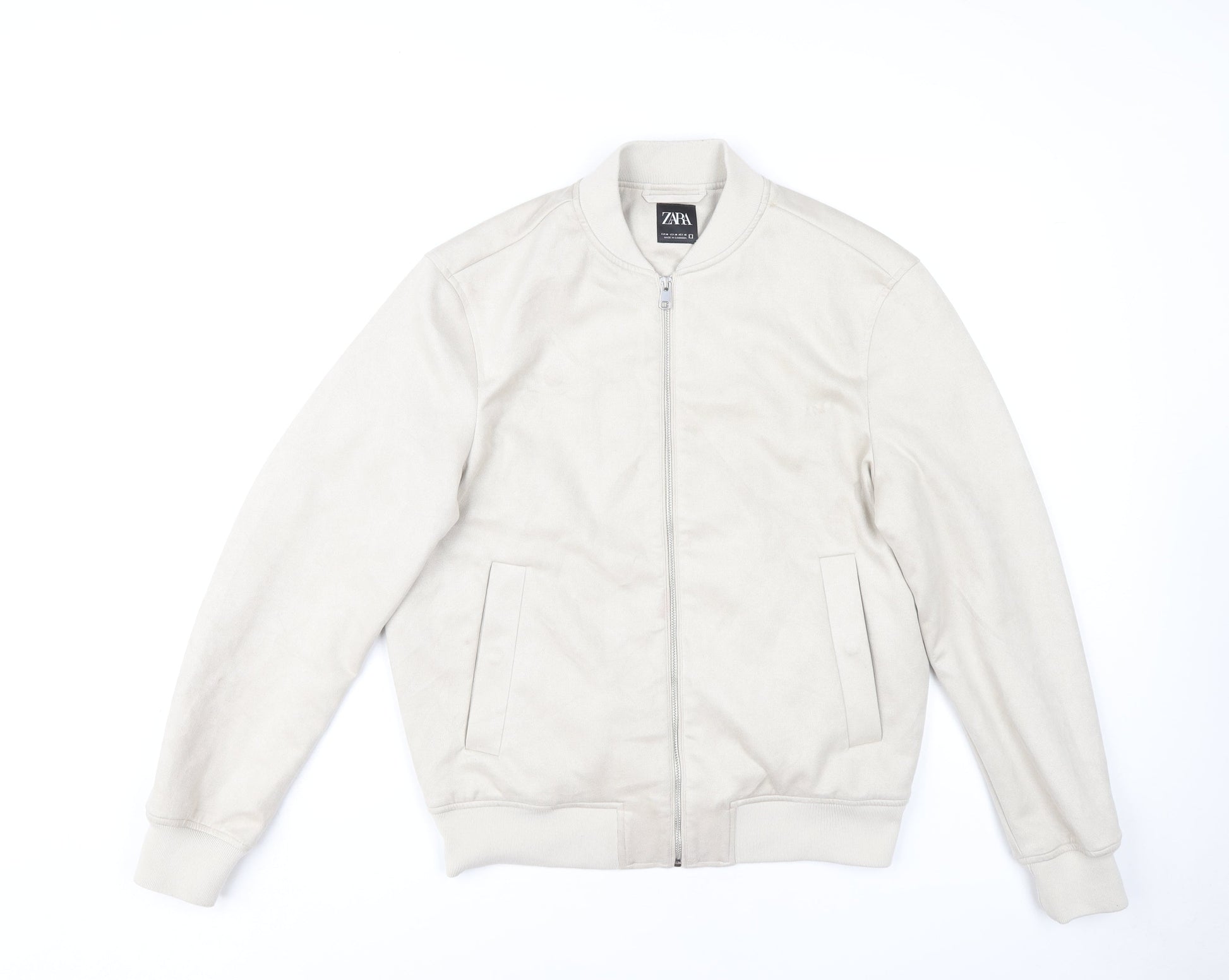 Zara Men's Beige Bomber Jacket, Medium, Casual Style