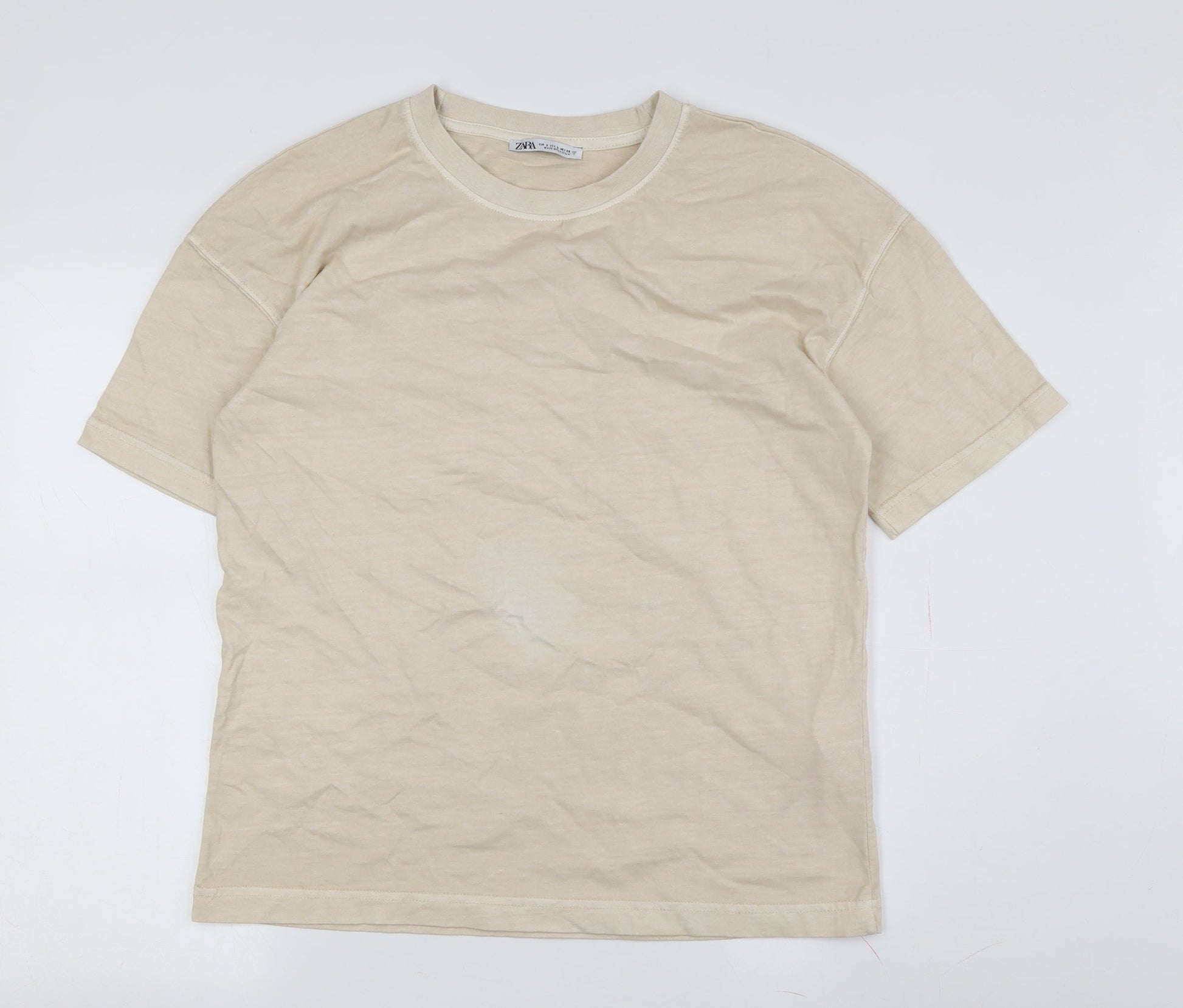 Zara Men's Beige Short Sleeve Crew Neck T-Shirt S