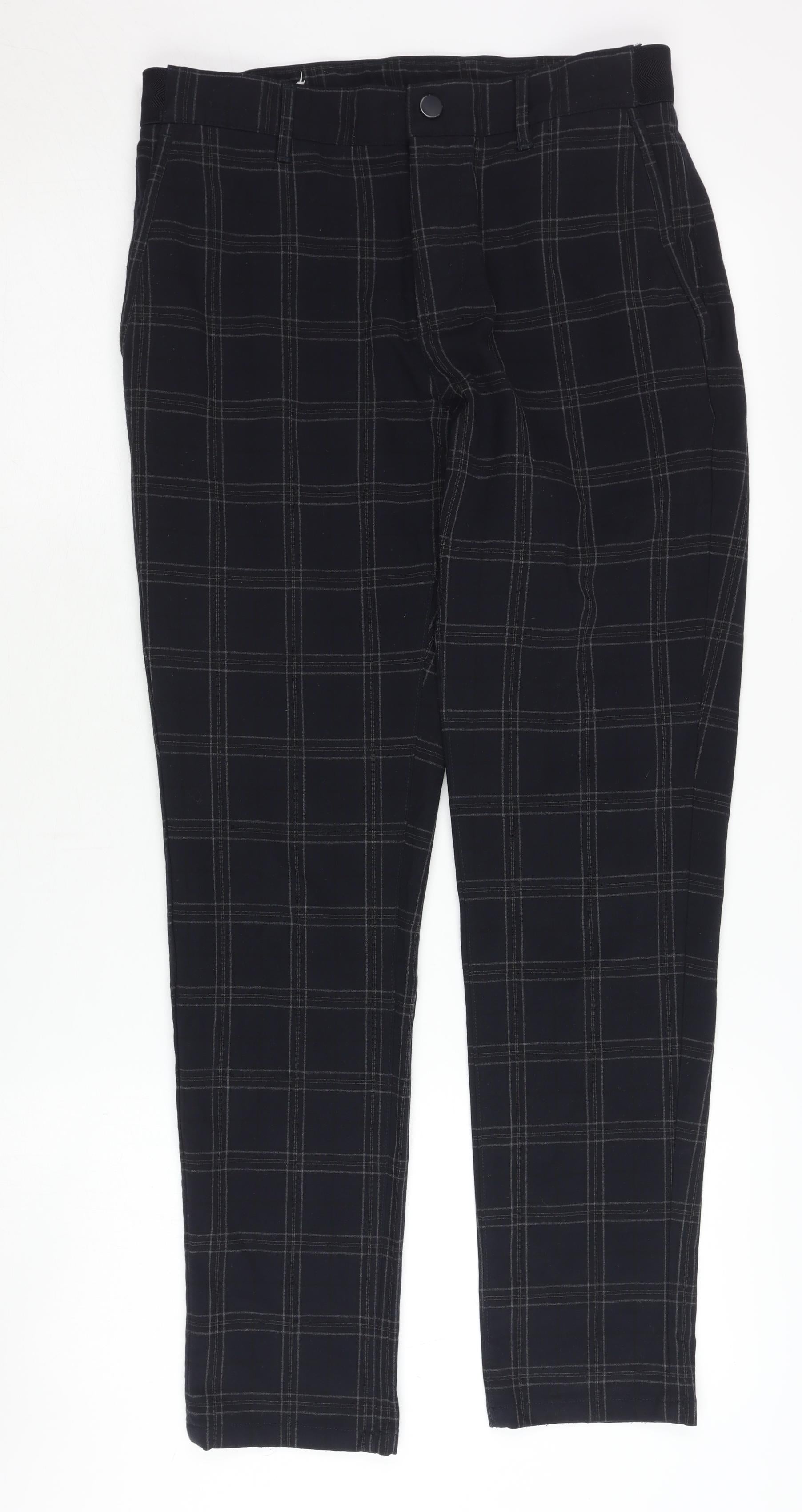Zara Men's Black Checked Trousers, Size 30