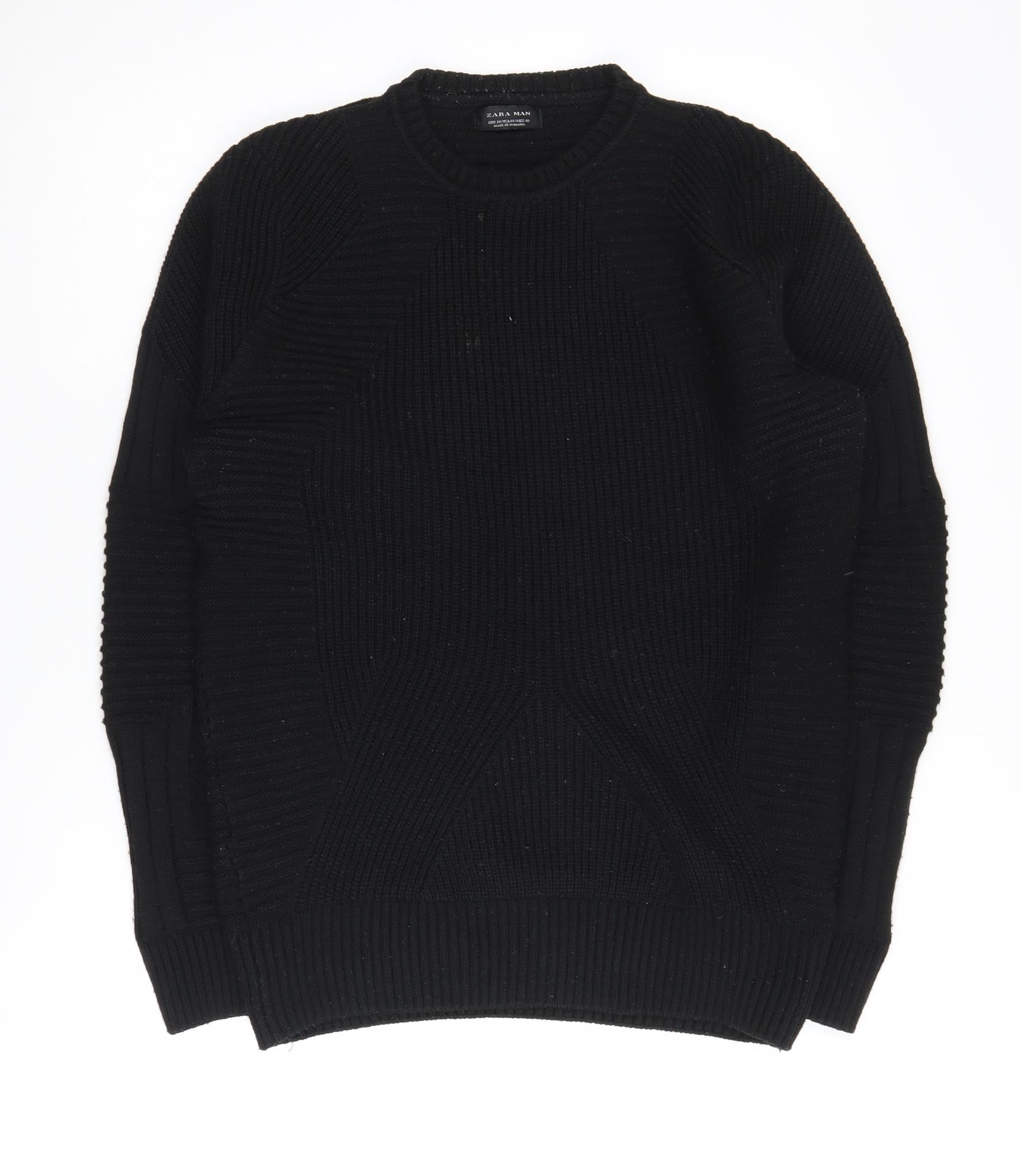 Zara Men's Black Knitted Crew Neck Pullover Jumper M