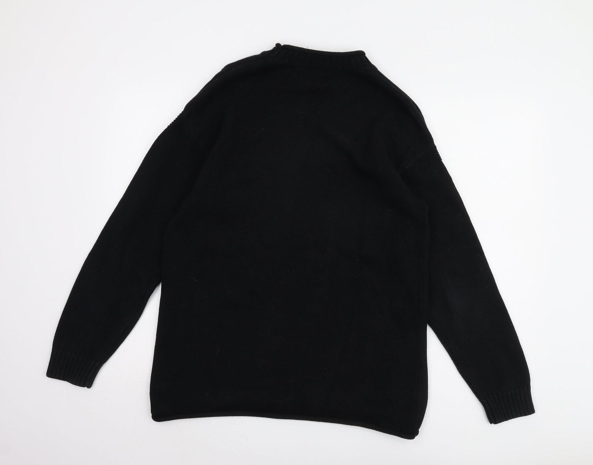 Zara Men's Black L Crew Neck Cotton Pullover Jumper