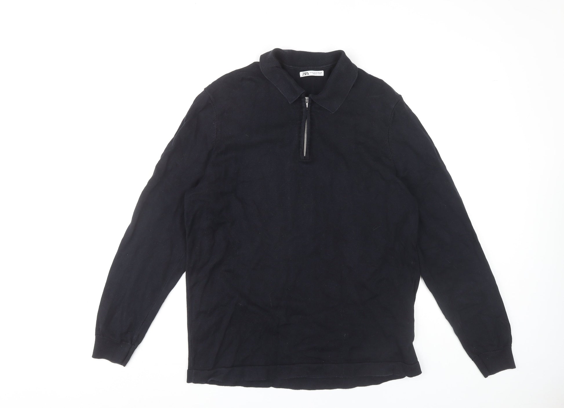 Zara Men's Black Long Sleeve Polo M 100% Cotton