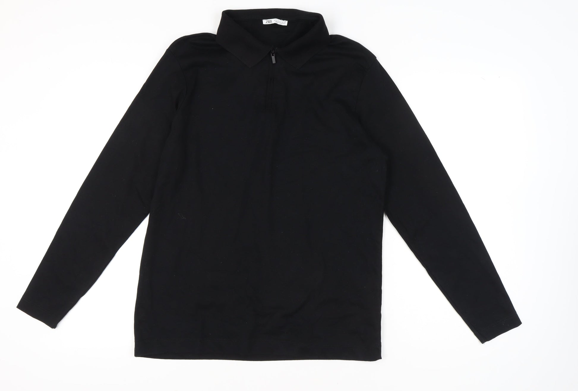 Zara Men's Black Long Sleeve Polo Shirt L Cotton Zip Collar