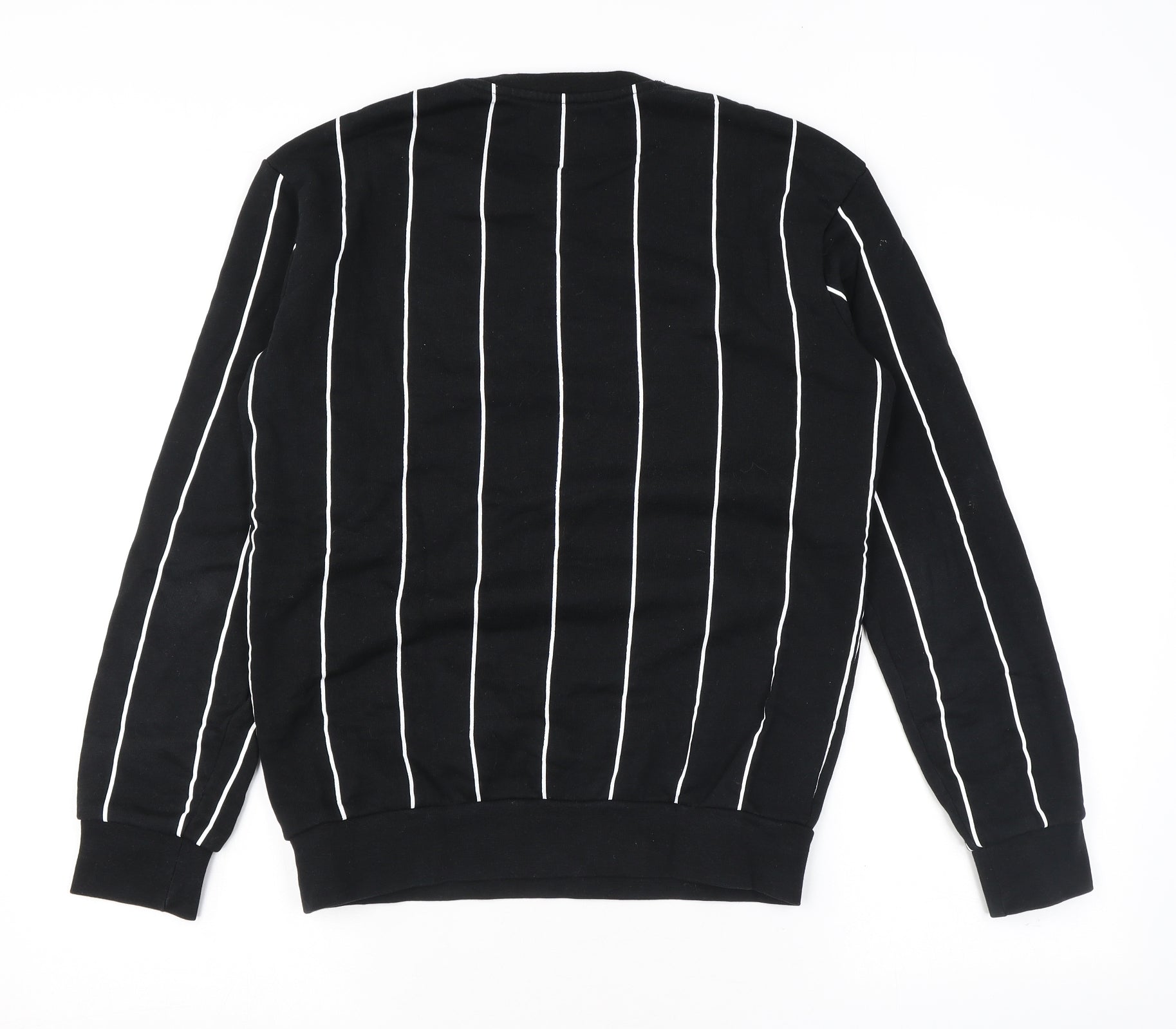 Zara Mens Black Striped Polyester Pullover Sweatshirt Size S