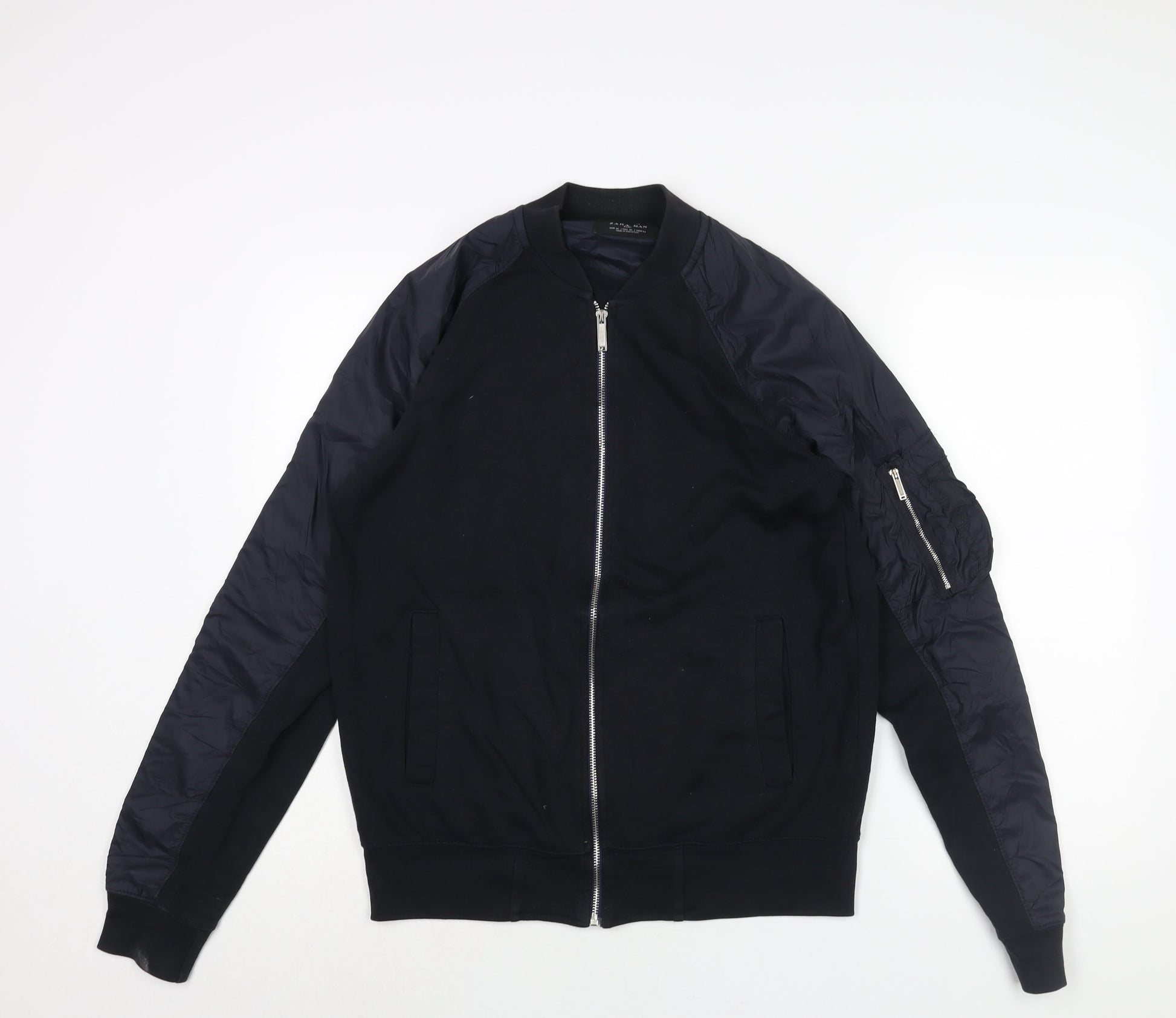 Zara Mens Blue Bomber Jacket Jacket Size XL Zip - Sleeve Panel