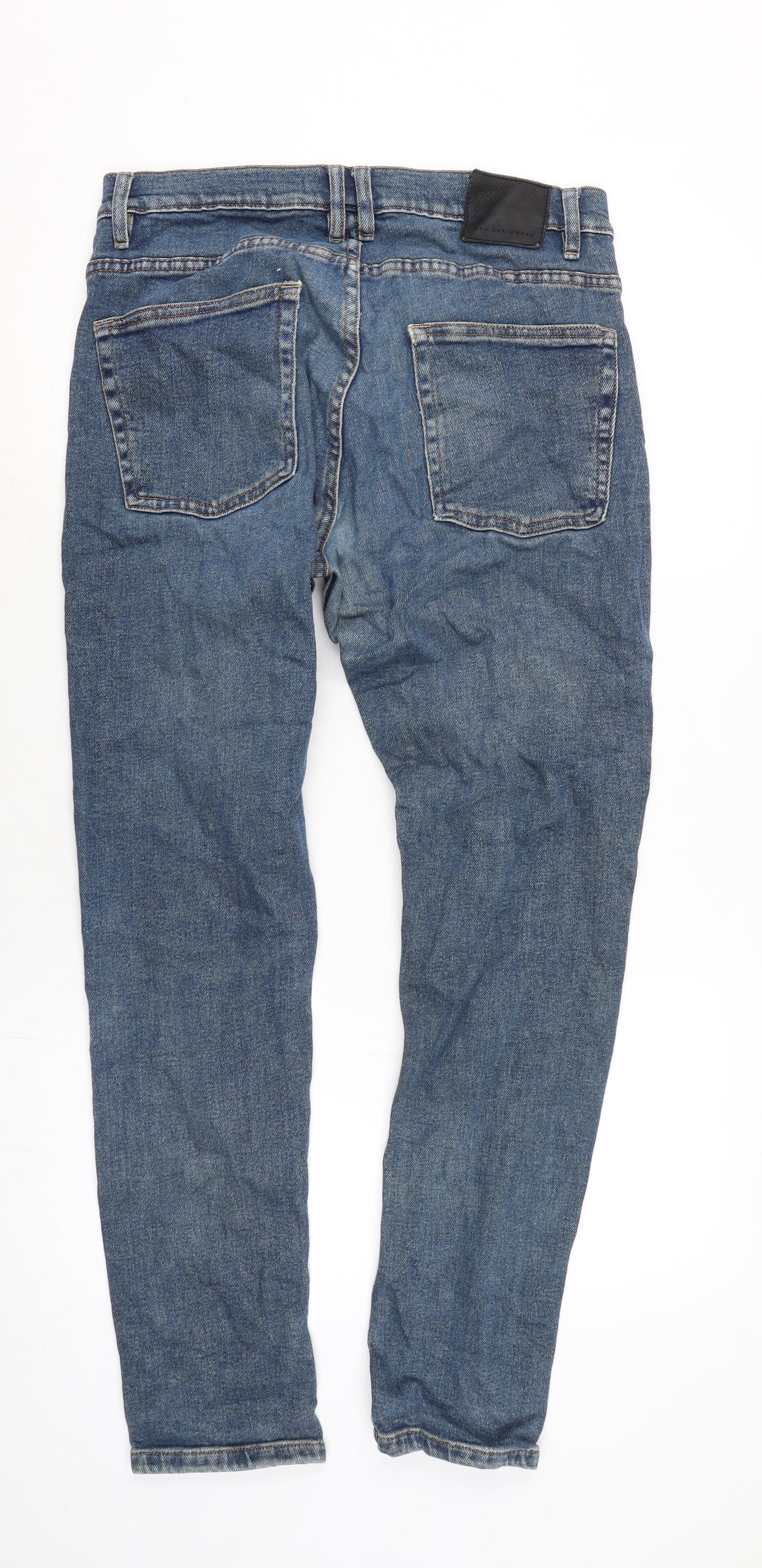 Zara Mens Blue Cotton Blend Straight Jeans Size 32 in L31 in Regular Zip