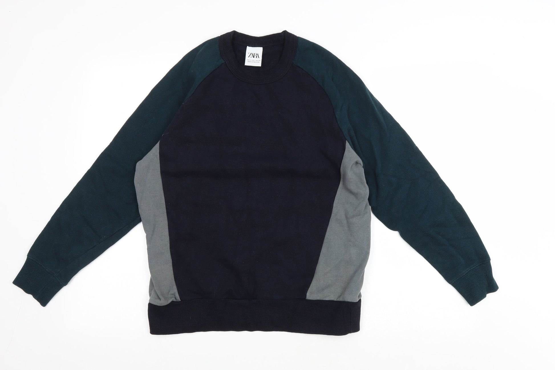 Zara Mens Blue Cotton Pullover Sweatshirt Size S
