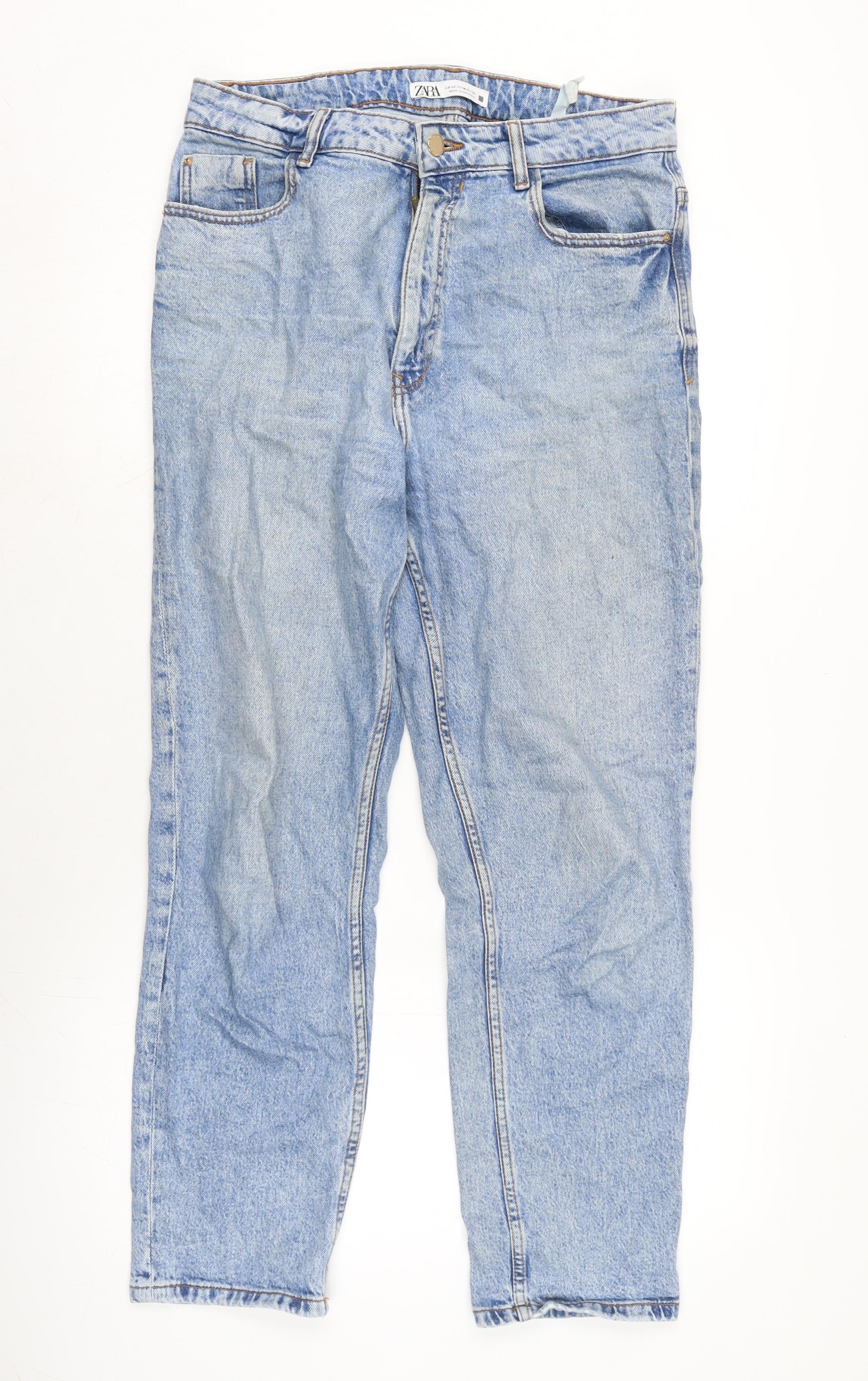 Zara Mens Blue Cotton Straight Jeans Size 32 in L28 in Regular Zip