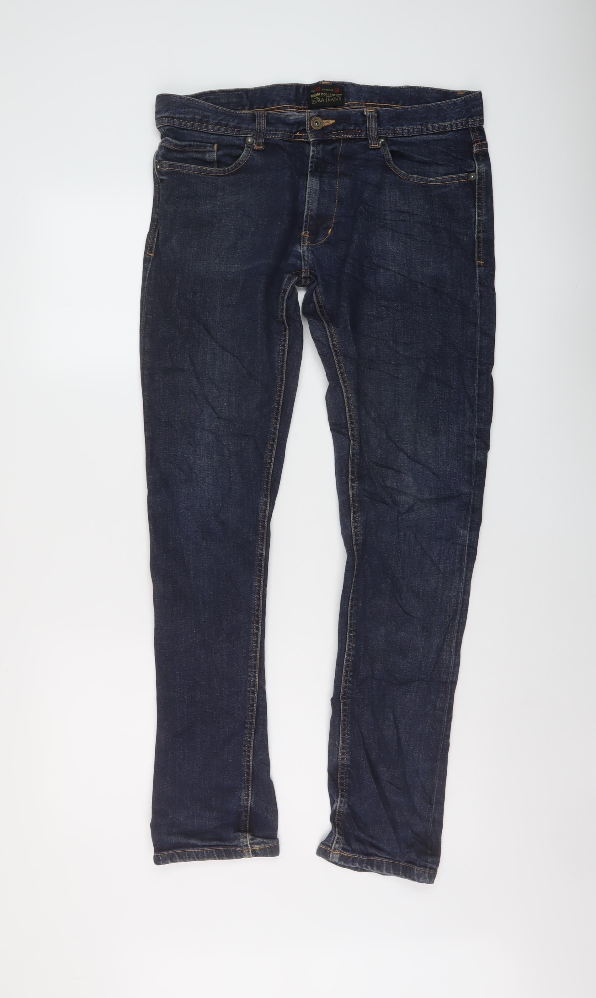 Zara Mens Blue Cotton Straight Jeans Size 32 in L31 in Regular Button