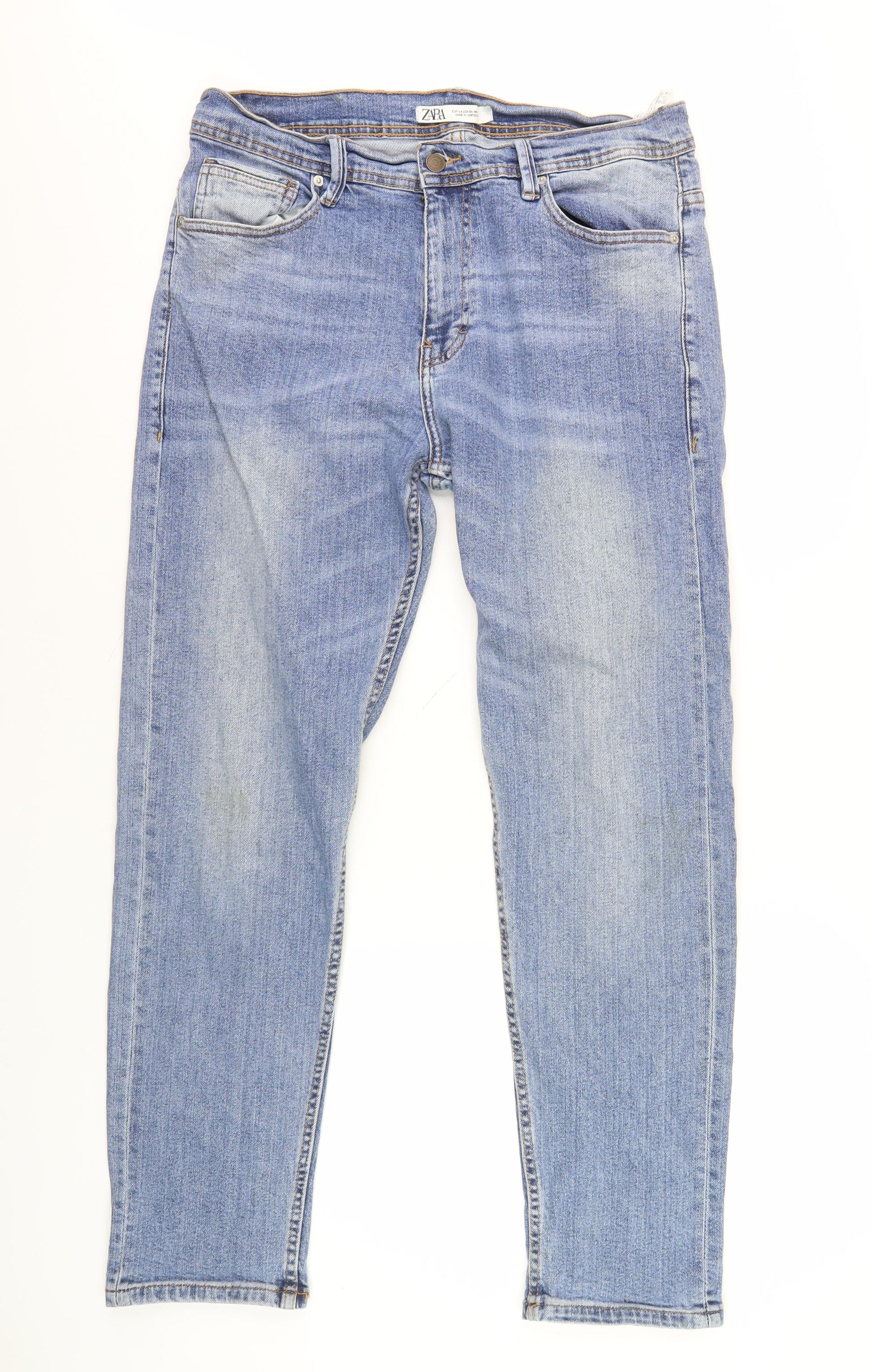 ZARA Men's Blue Jeans 34 Waist Light Denim Casual