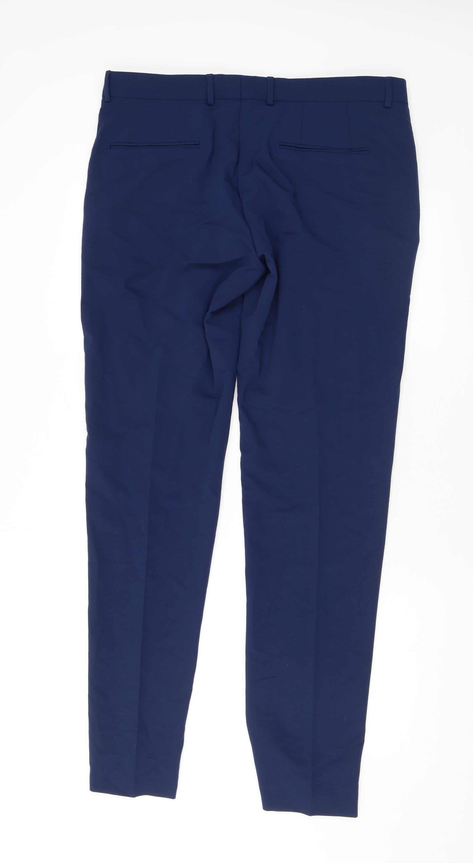 Zara Mens Blue Polyester Dress Pants Trousers Size 44 in L33 in Regular Zip