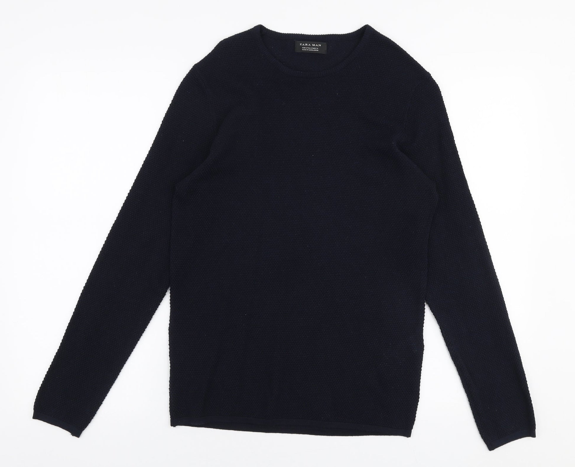Zara Mens Blue Round Neck Cotton Pullover Jumper Size S