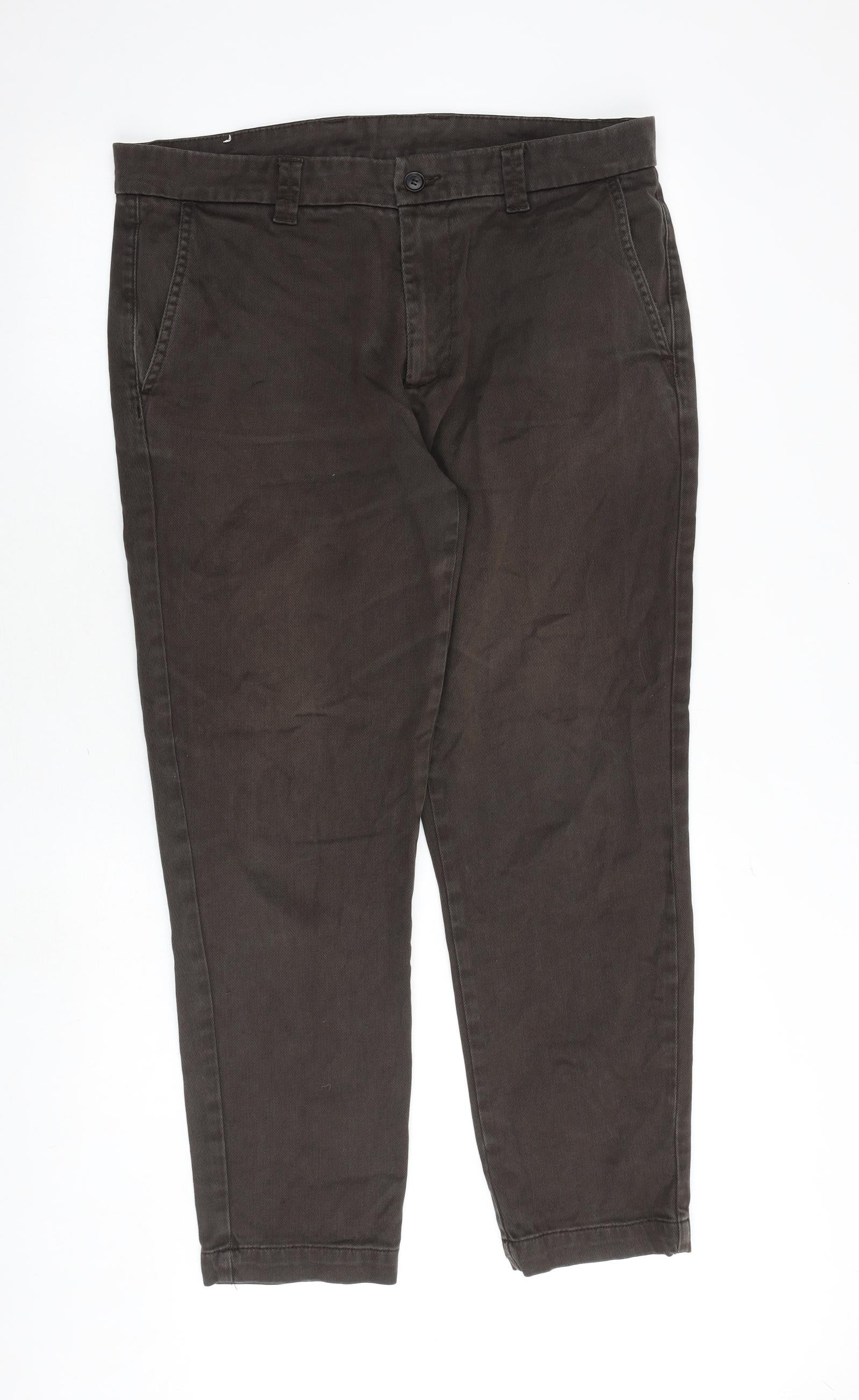 Zara Mens Brown Cotton Trousers Size 37 in Regular Zip