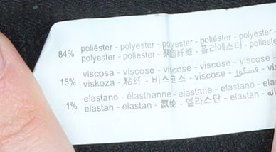 - Material Breakdown: 84% Polyester 15% Viscose 1% Elastane