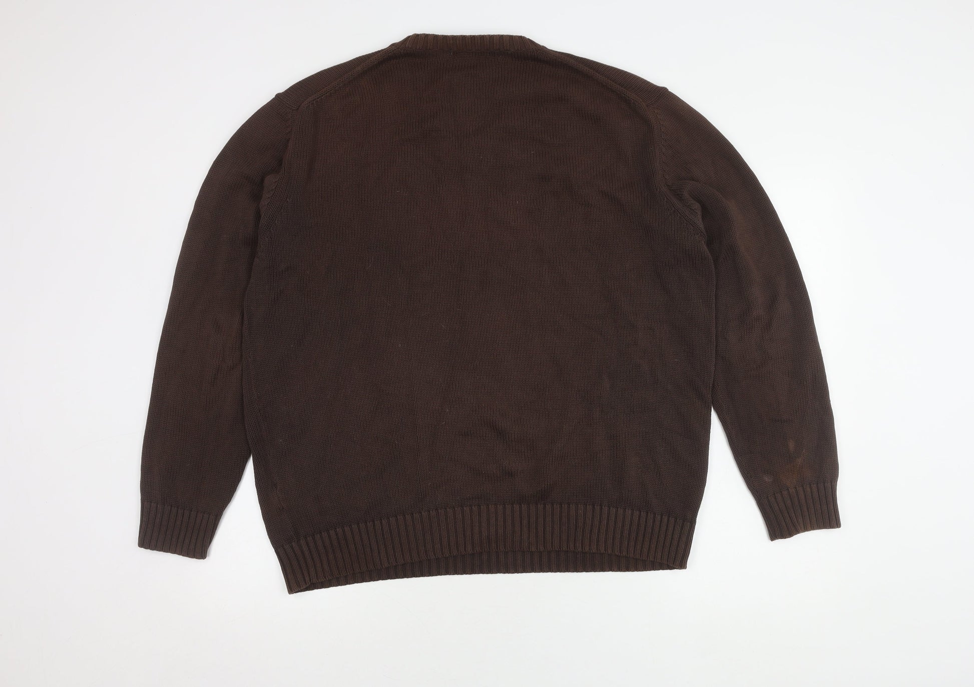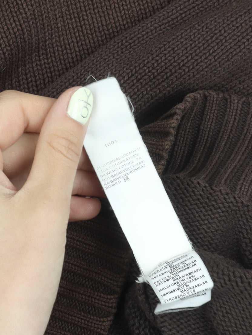 Zara Men's Brown XL V-Neck Cotton Pullover Jumper