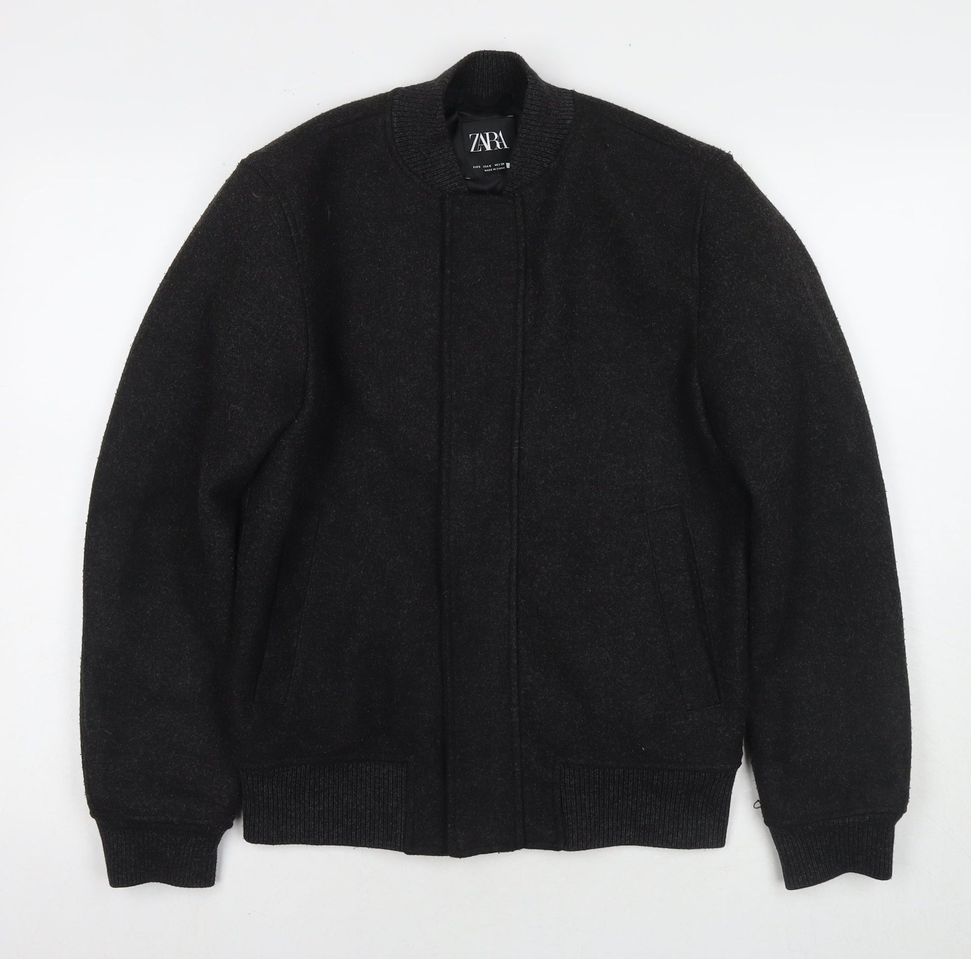 Zara Mens Grey Bomber Jacket Coat Size S Zip