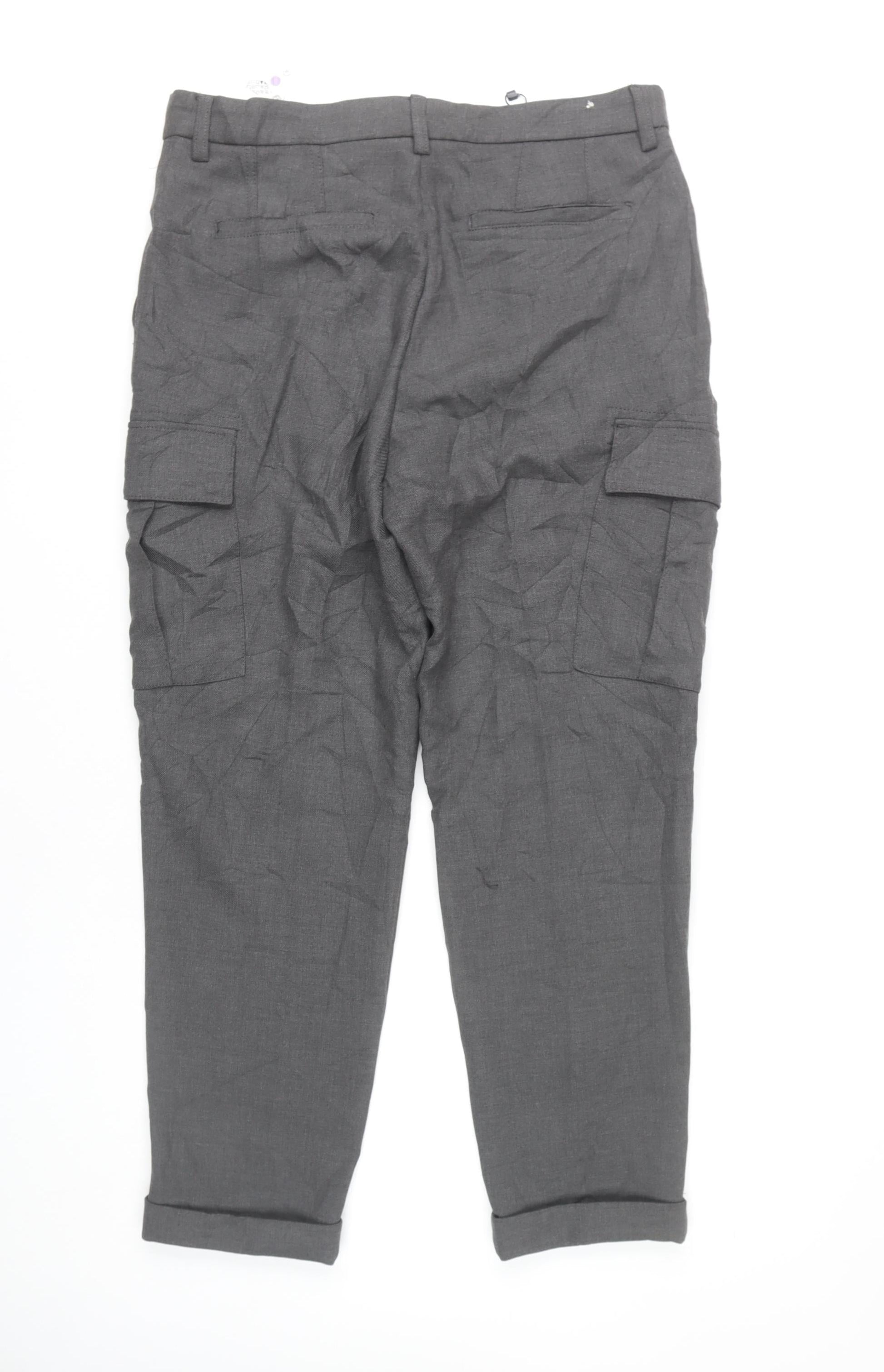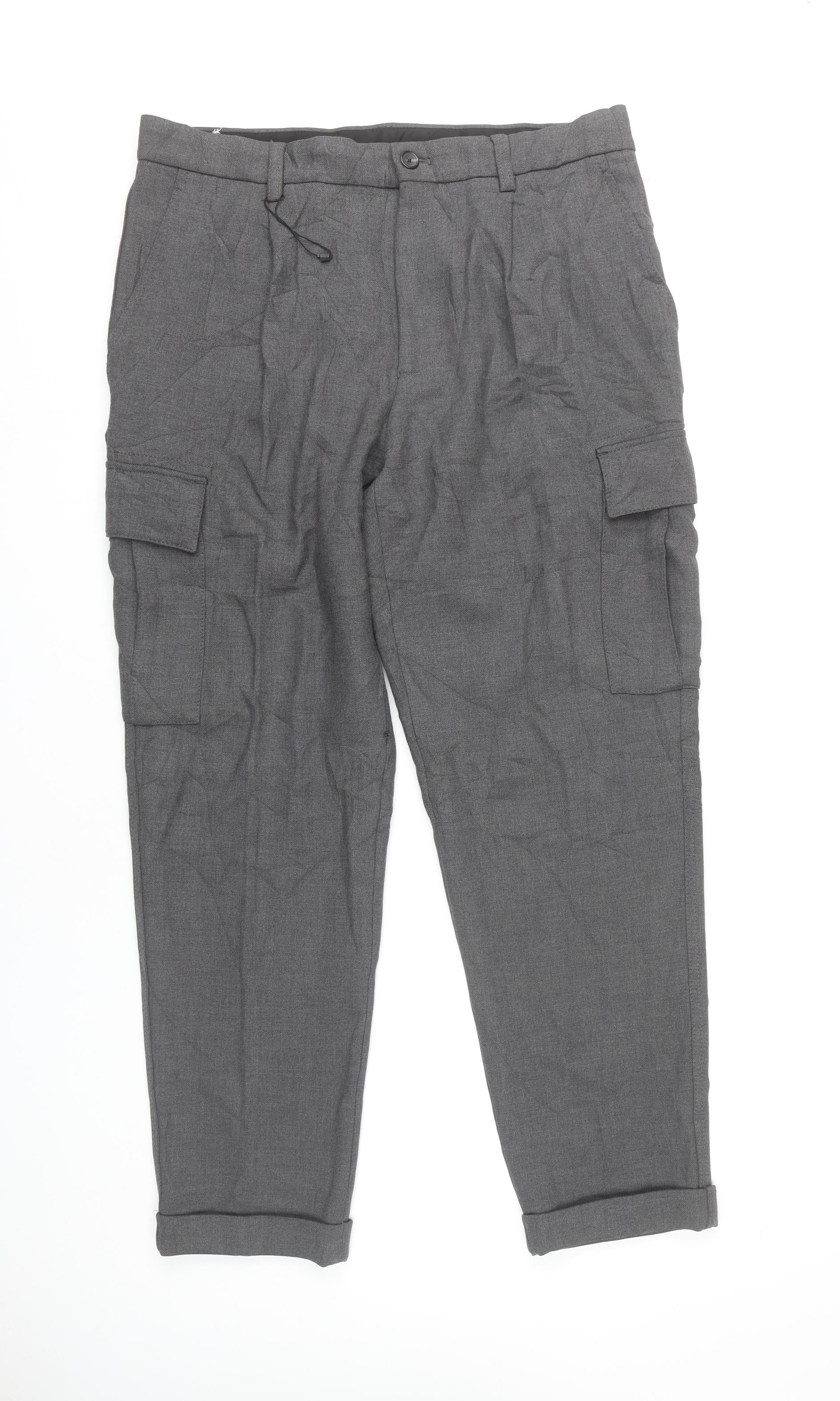 Zara Men's Grey Cargo Trousers 34in Waist Pleated Front Autumn Winter