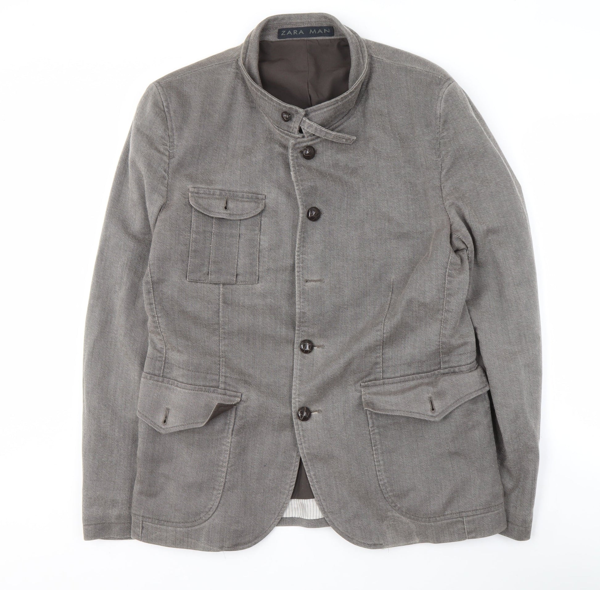 Zara Men's Grey Casual Jacket, Size 42, Stand-Up Collar