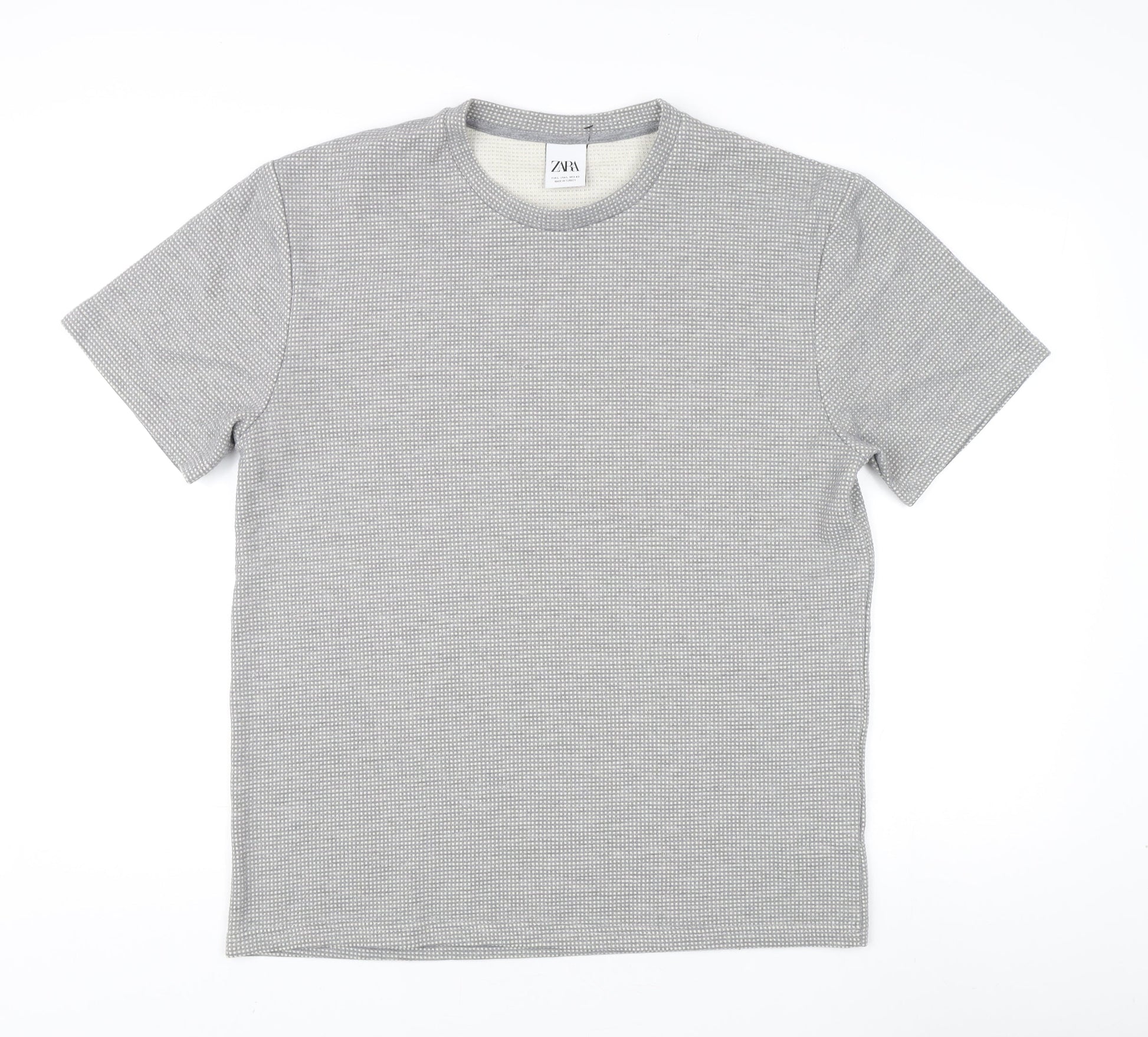 Zara Men's Grey Check T-Shirt Size L Crew Neck
