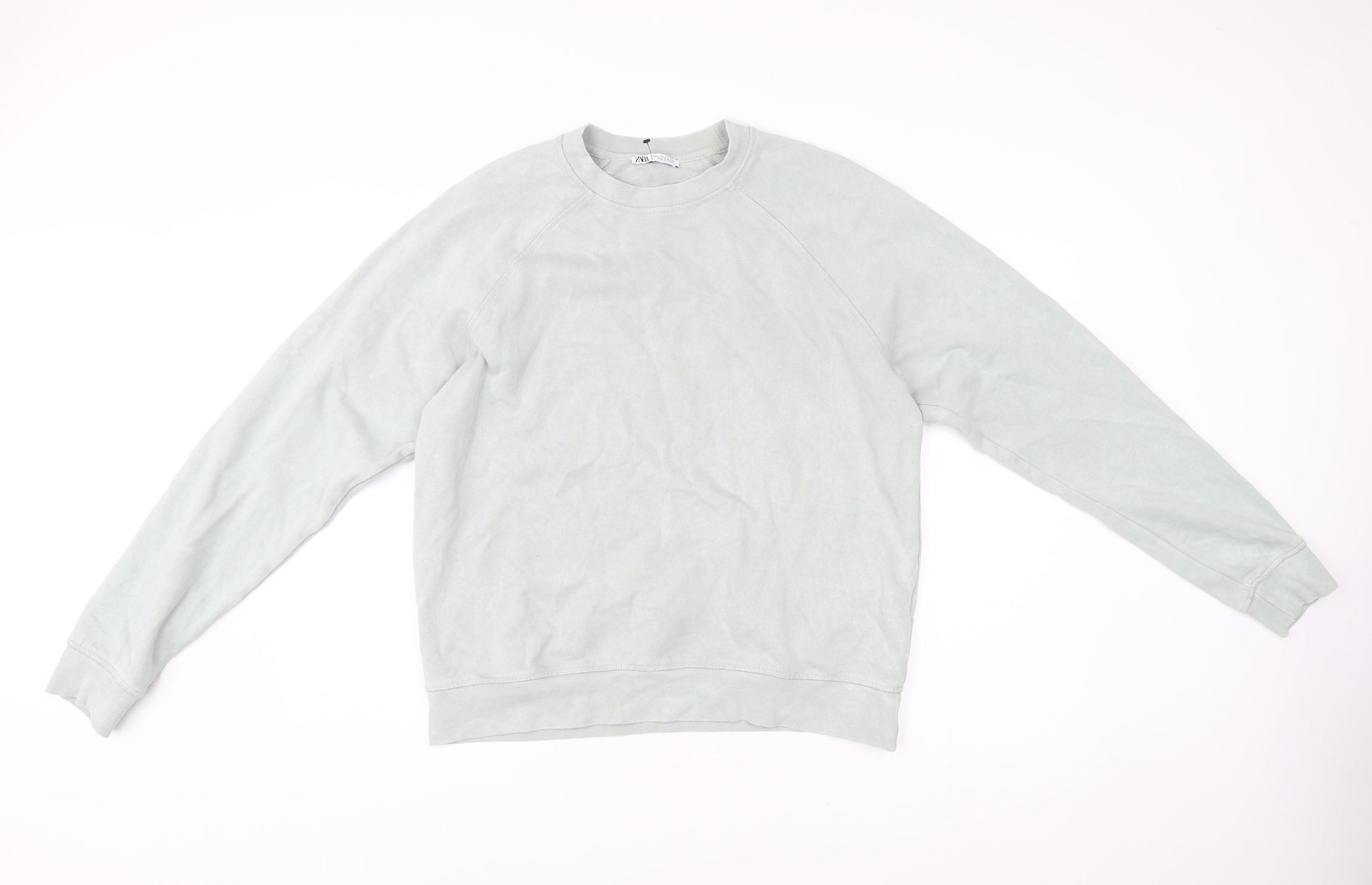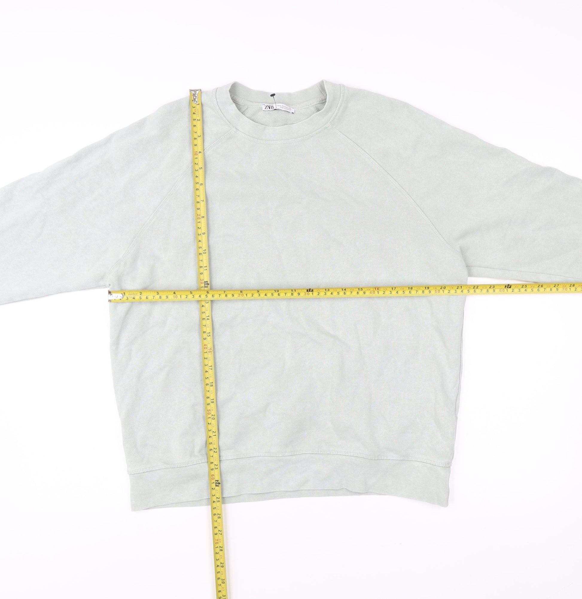 Zara Mens Grey Cotton Crew Neck Pullover Sweatshirt Size S