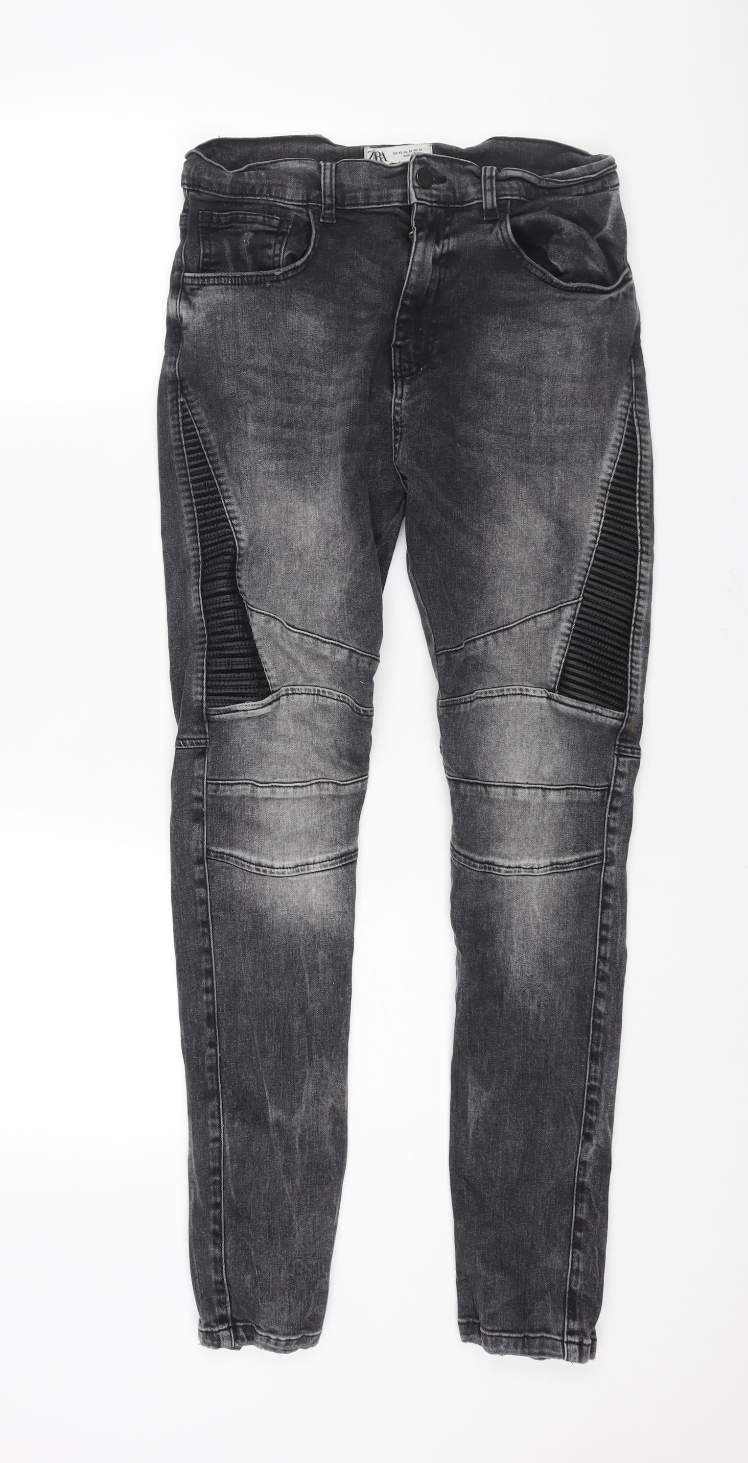 Zara Mens Grey Cotton Skinny Jeans Size 32 in L30 in Regular Zip - Biker Style