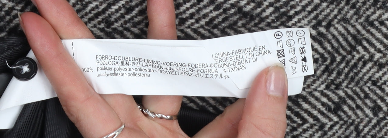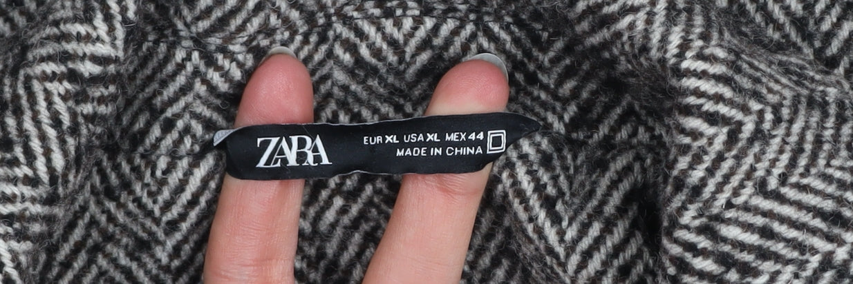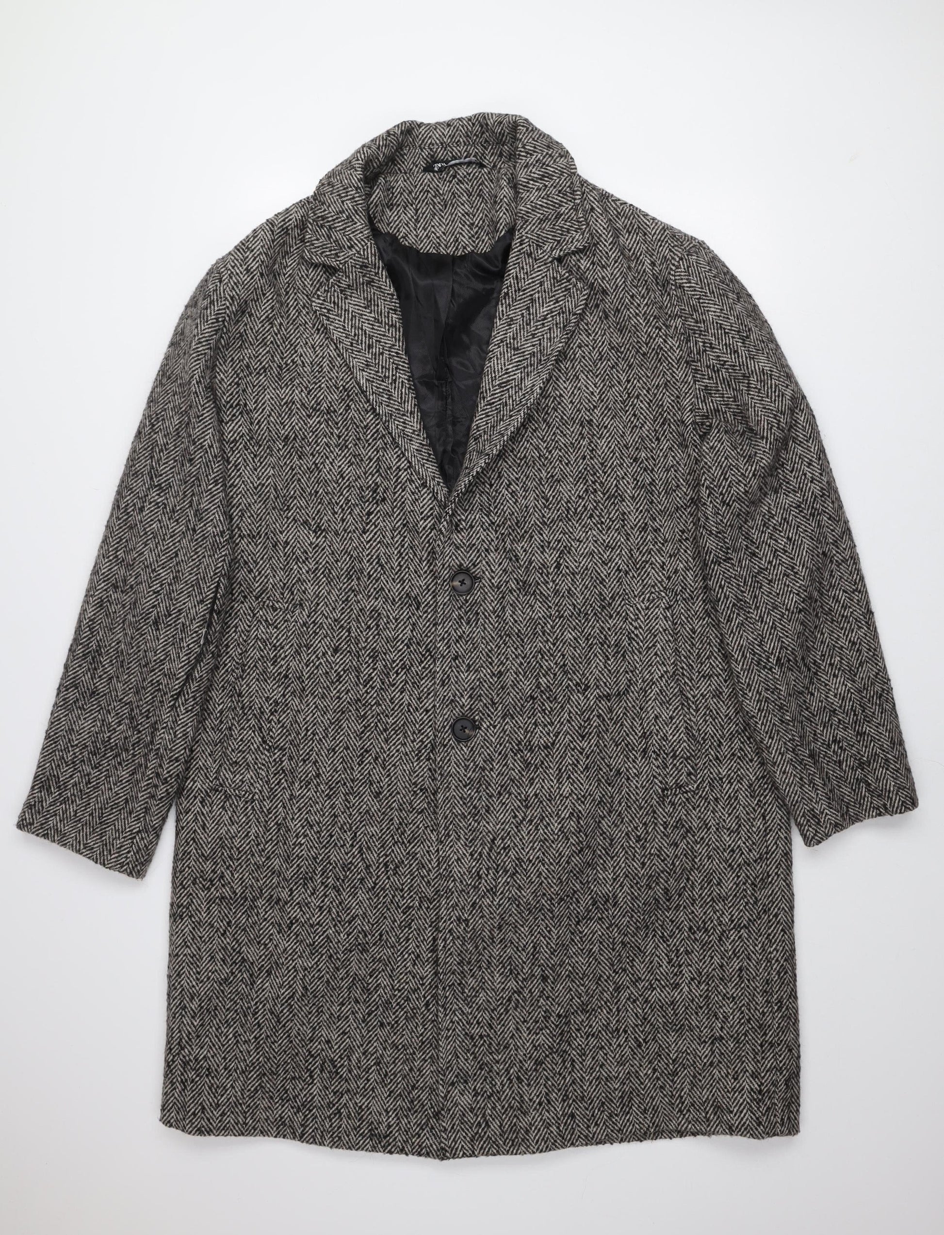 Zara Men's Grey Herringbone Wool Blend XL Long Overcoat