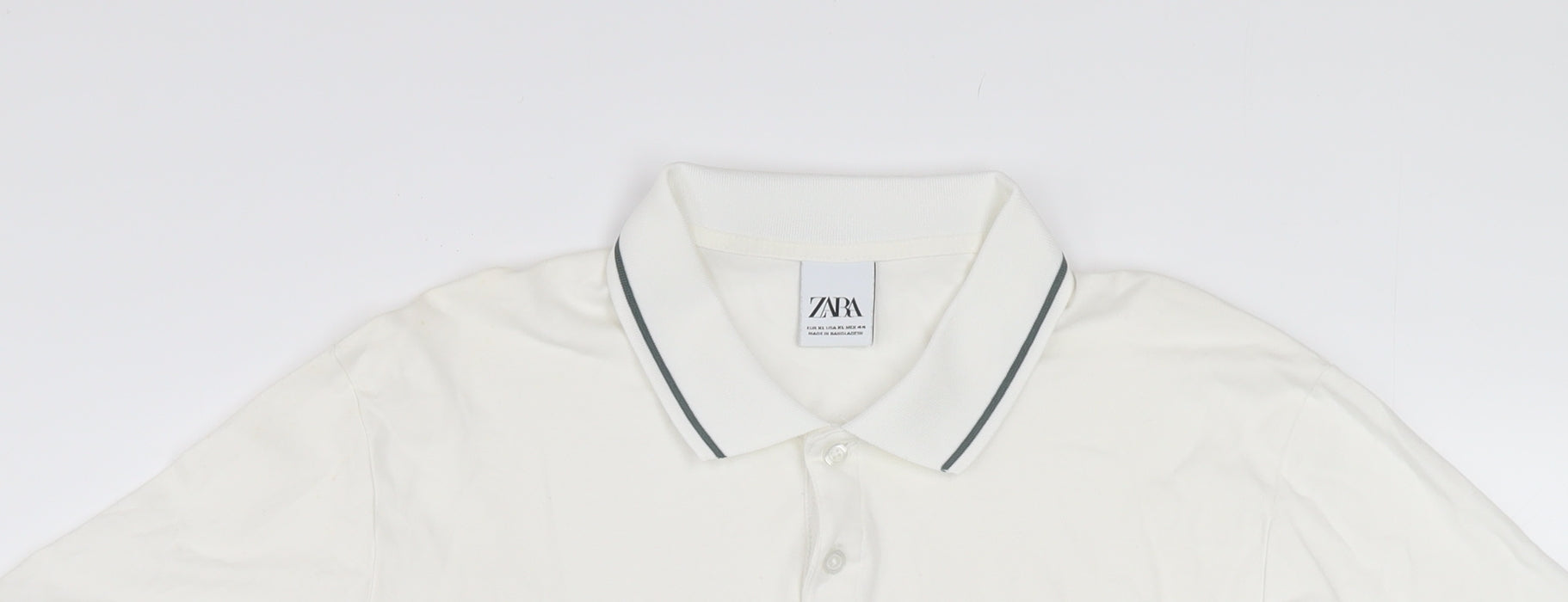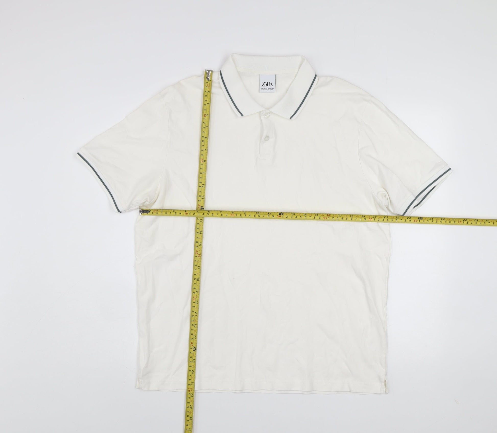 Zara Men's White XL Cotton Short Sleeve Polo Shirt