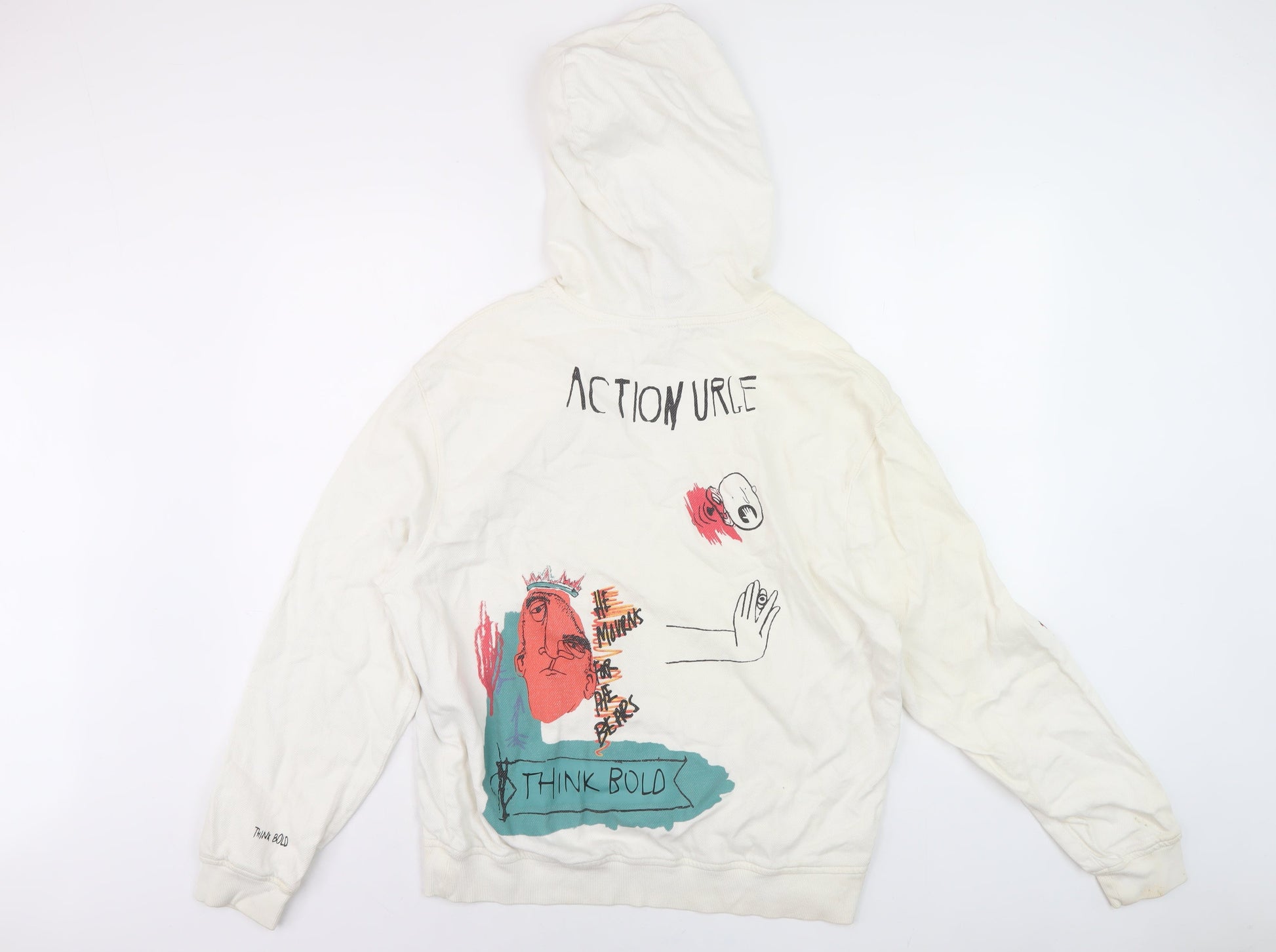 Zara Unisex White Graphic Print Pullover Hoodie S