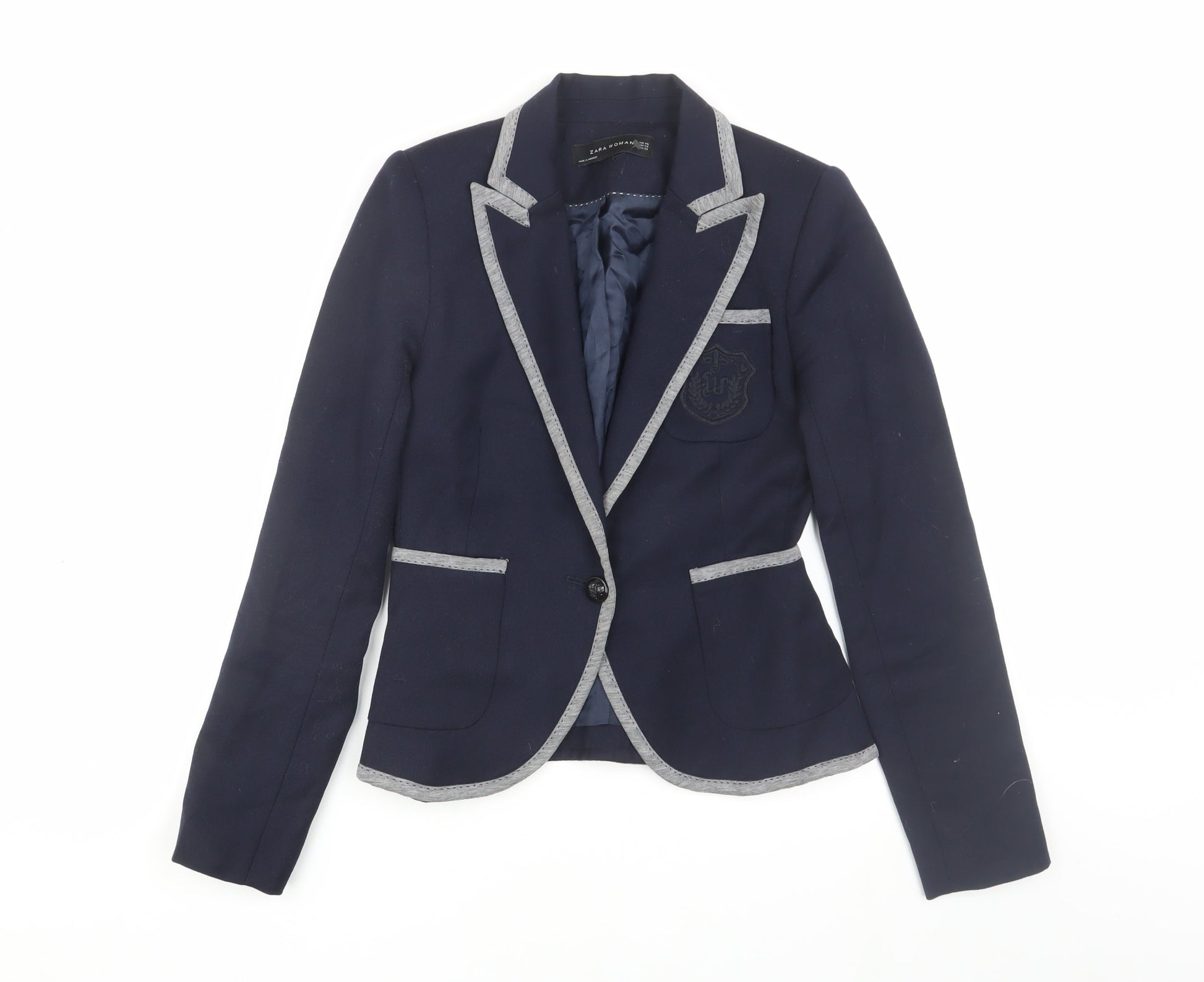 Zara Woman Women's Blue XS Blazer with Notch Lapel