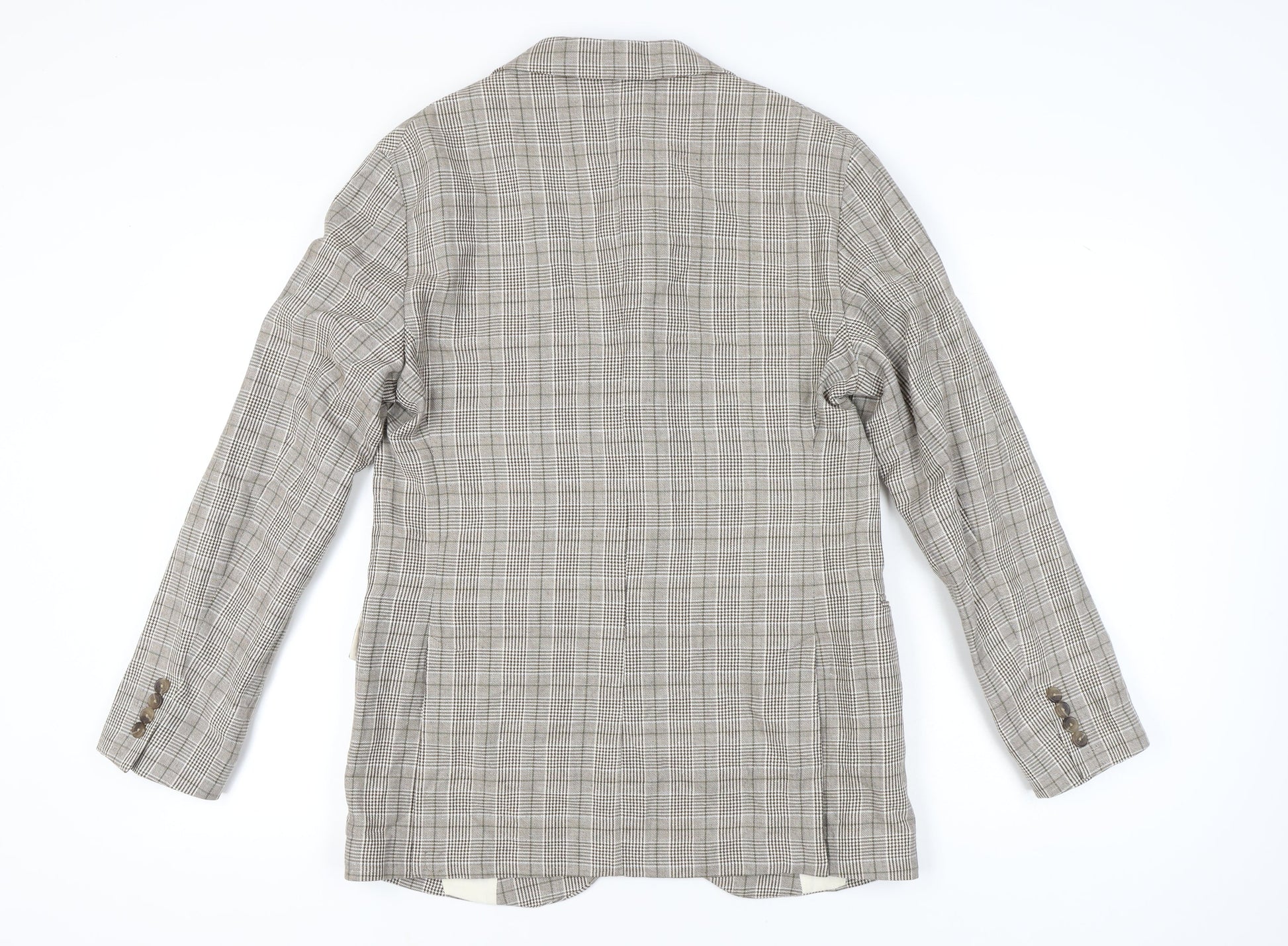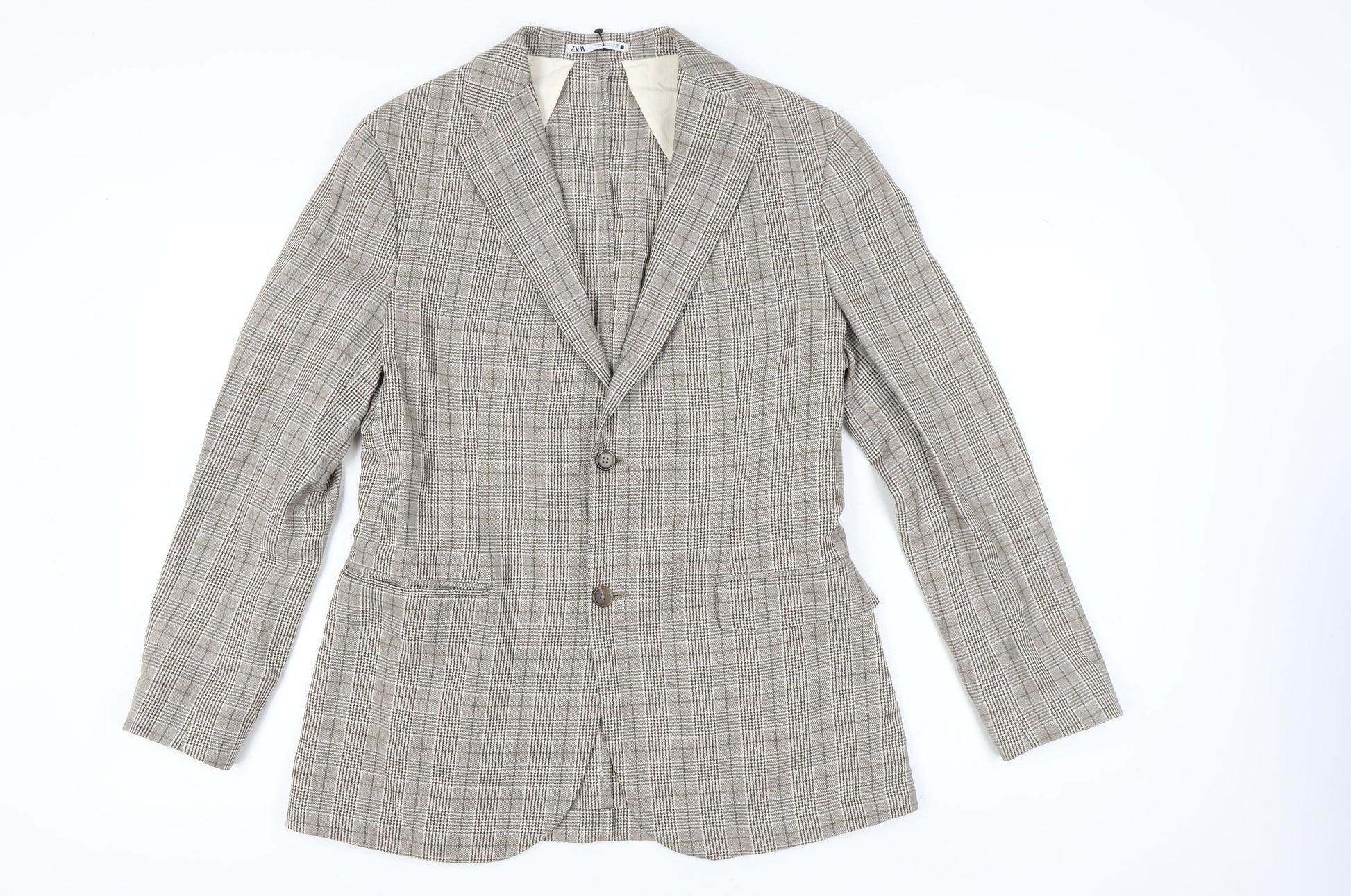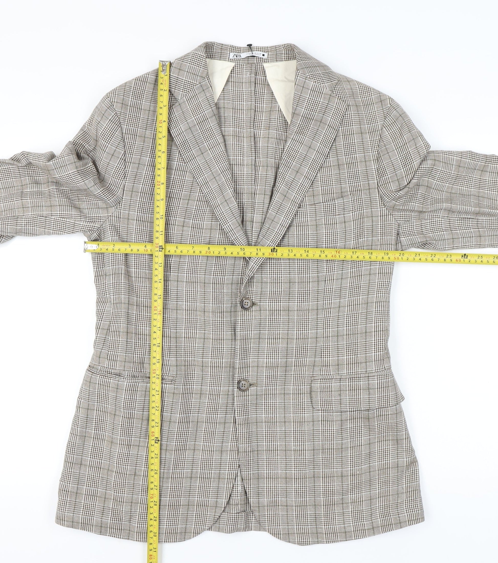 Zara Women Beige Check Linen Blend Blazer Jacket Size 14