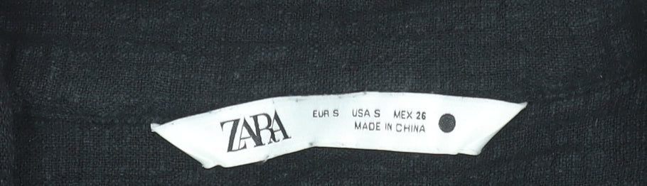 Zara Women Black Cotton Collared Short Sleeve Playsuit Size S
