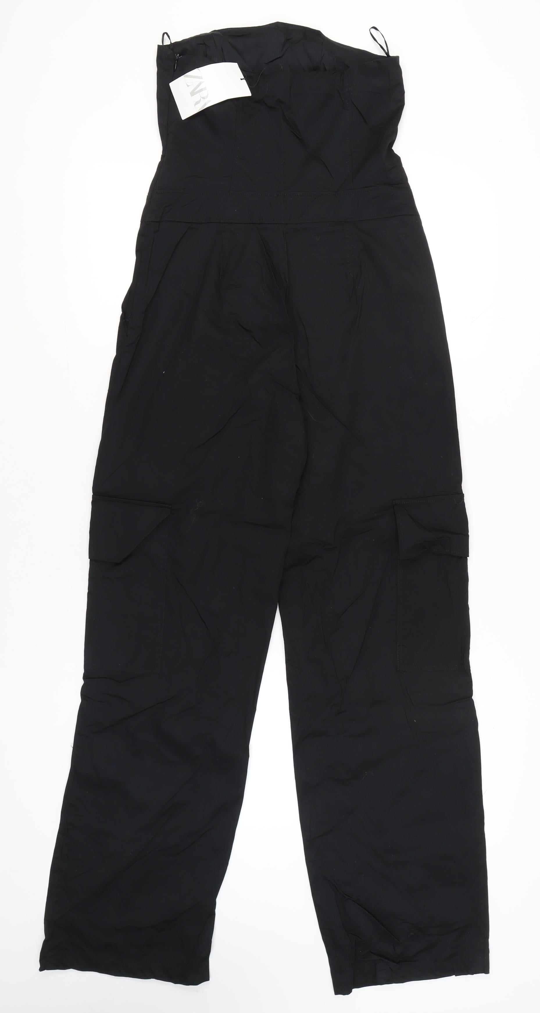 Zara Women Black Strapless Wide-Leg Jumpsuit Size S Cotton