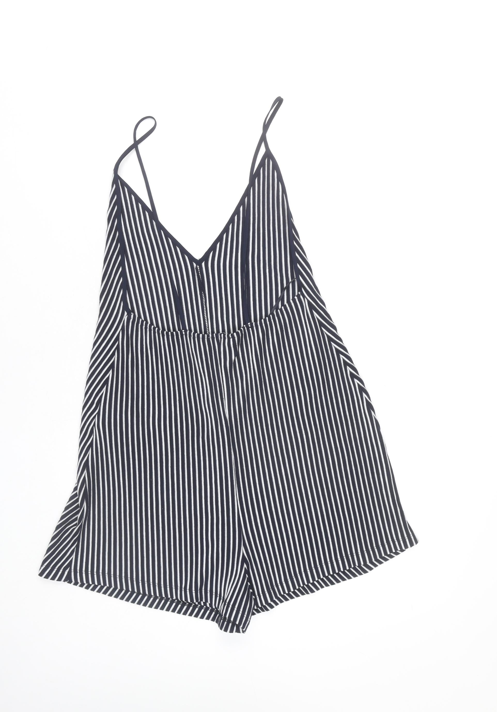 Zara Women Black White Striped Playsuit Size 8 Sleeveless V-Neck